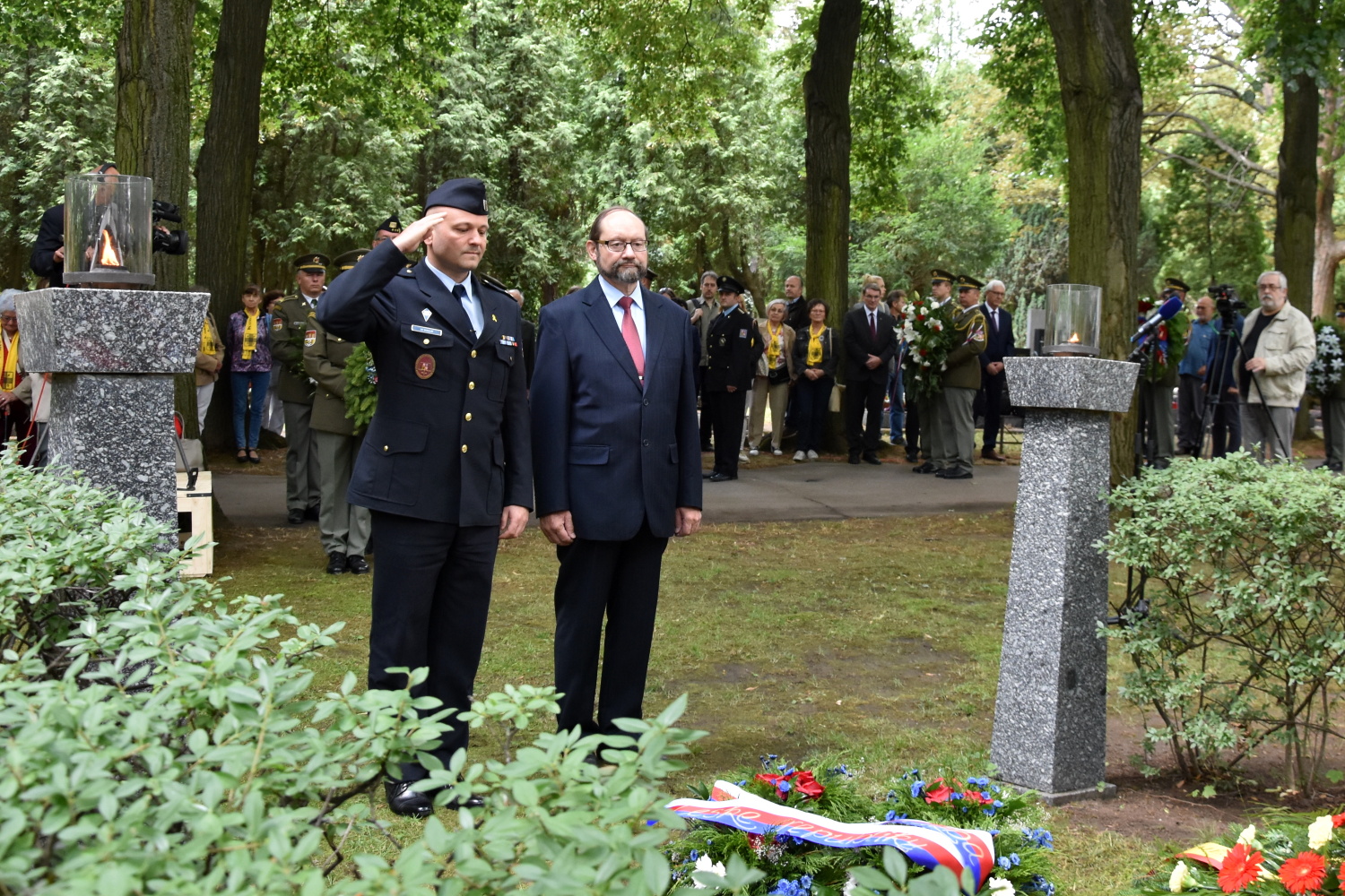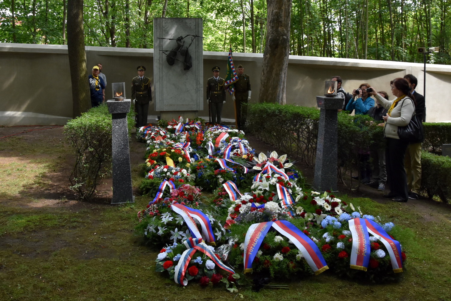 PRAHA 26. června (VS ČR) - Památku obětí totalitních režimů a zvláště obětí komunismu si dnes na hřbitově v Ďáblicích připomněli účastníci pietního aktu, uspořádaného den před výročím popravy Milady Horákové. Pietního shromáždění se zúčastnili zástupci Sdružení bývalých politických vězňů, slovenské Konfederace politických vězňů, státních orgánů a dalších organizací. Vězeňskou službu ČR reprezentoval ředitel kanceláře GŘ Jiří Dolejší a vedoucí kabinetu dokumentace a historie Alex Kýr. Za vazební věznici Praha Pankrác se pietního aktu zúčastnil její ředitel Pavel Dresler.
