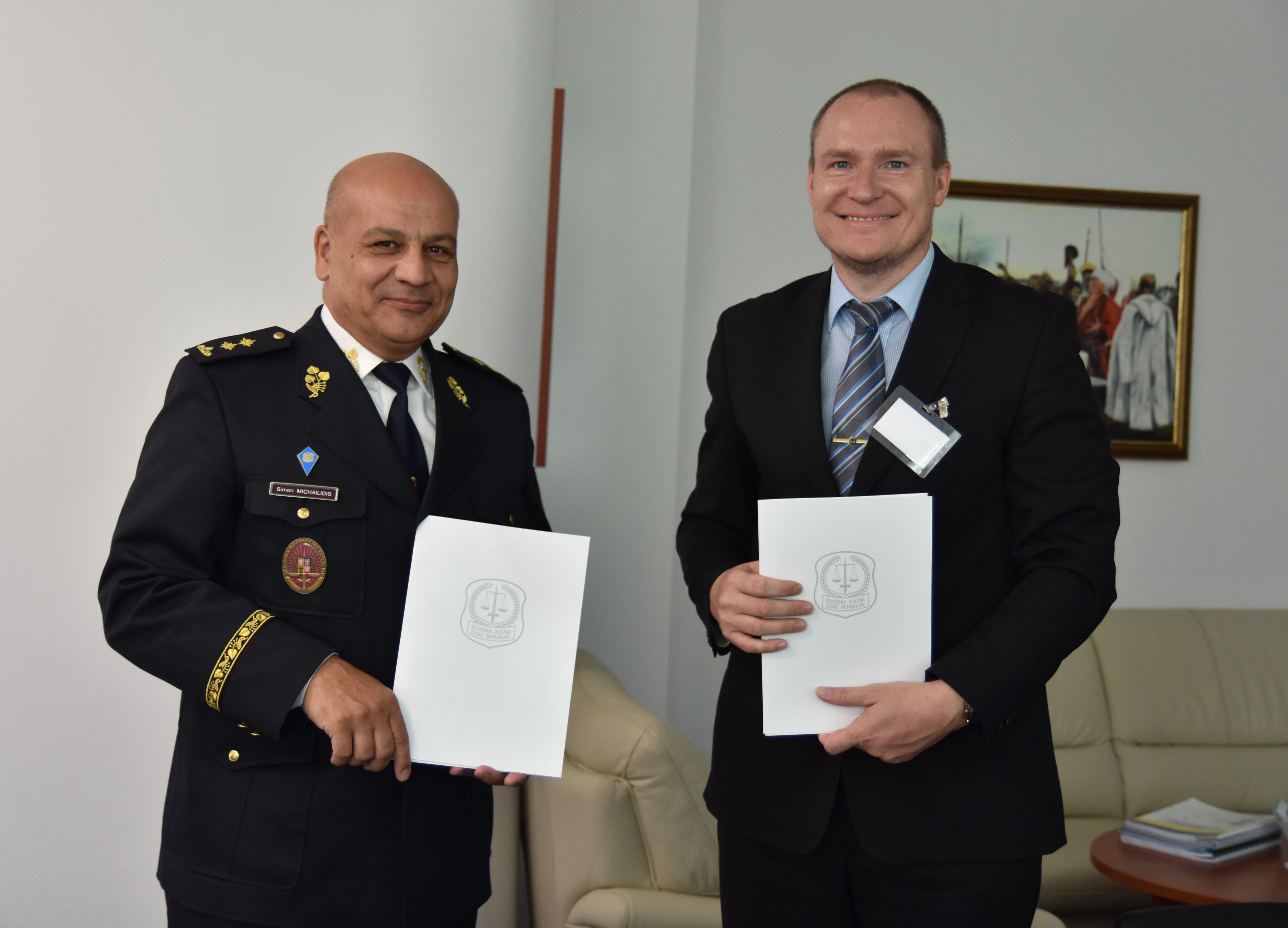 PRAHA 5. června (VS ČR) - Spolupráce v oblasti kriminologicko-penologického či penitenciárního výzkumu, vzdělávání a praktické přípravy studentů pro budoucí výkon profese v bezpečnostní oblasti včetně vězeňství, jsou hlavním obsahem memoranda, které dnes uzavřel generální ředitel Vězeňské služby ČR Simon Michailidis s rektorem Vysoké školy evropských a regionálních studií Jiřím Duškem.