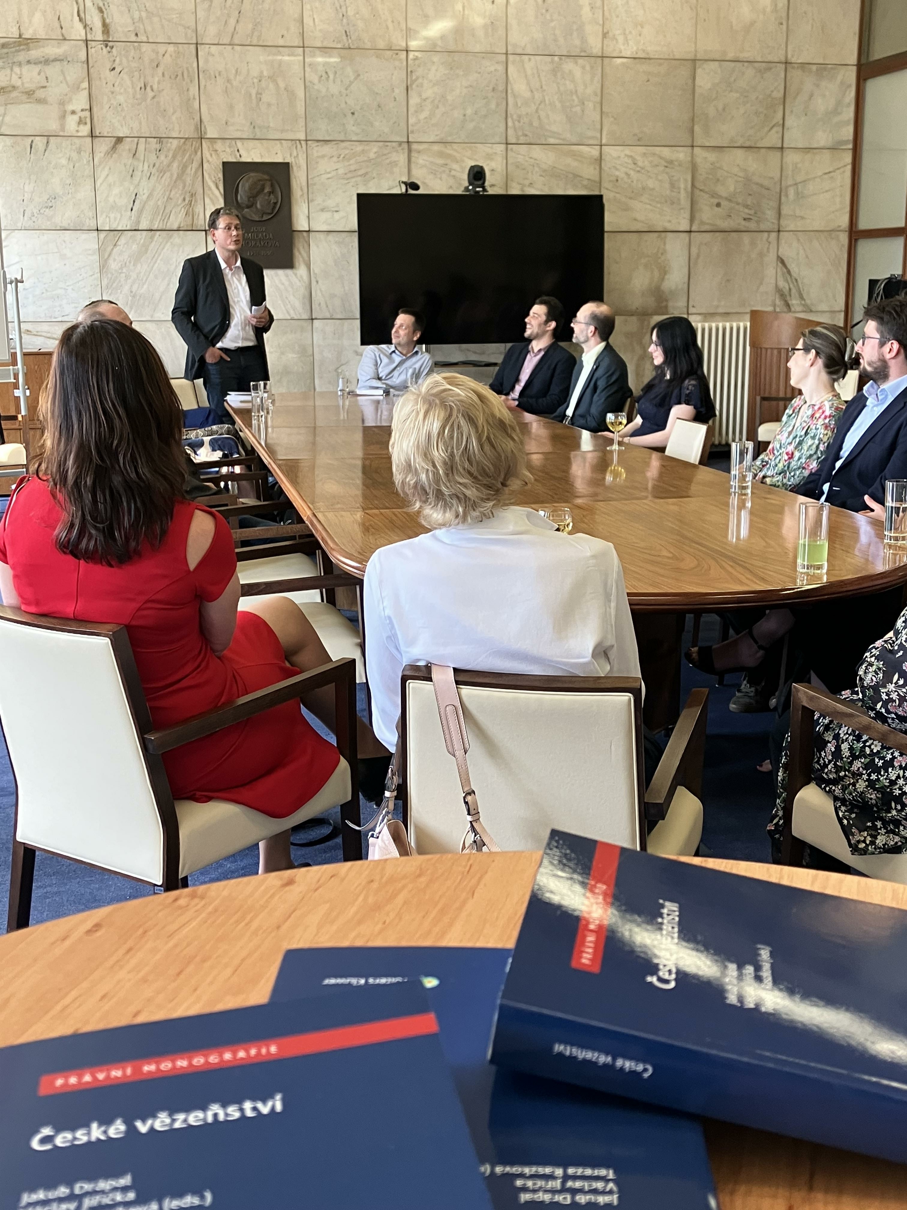 PRAHA 11. května - V úterý 10. května 2022 byla na Právnické fakultě UK slavnostně pokřtěna právní monografie České vězeňství, která byla vydána na konci roku 2021 s podporou vydavatelství Wolters Kluwer. Za účasti hlavních editorů Jakuba Drápala, Václava Jiřičky a Terezy Raszkové a dalších více než dvou desítek spoluautorů knihu slavnostně pokřtil ředitel Institutu pro kriminologii a sociální prevenci Petr Zeman.