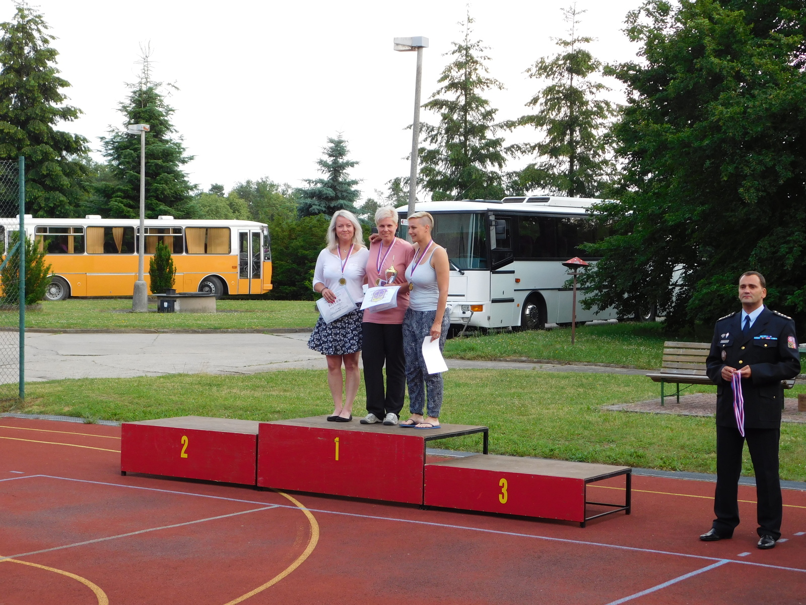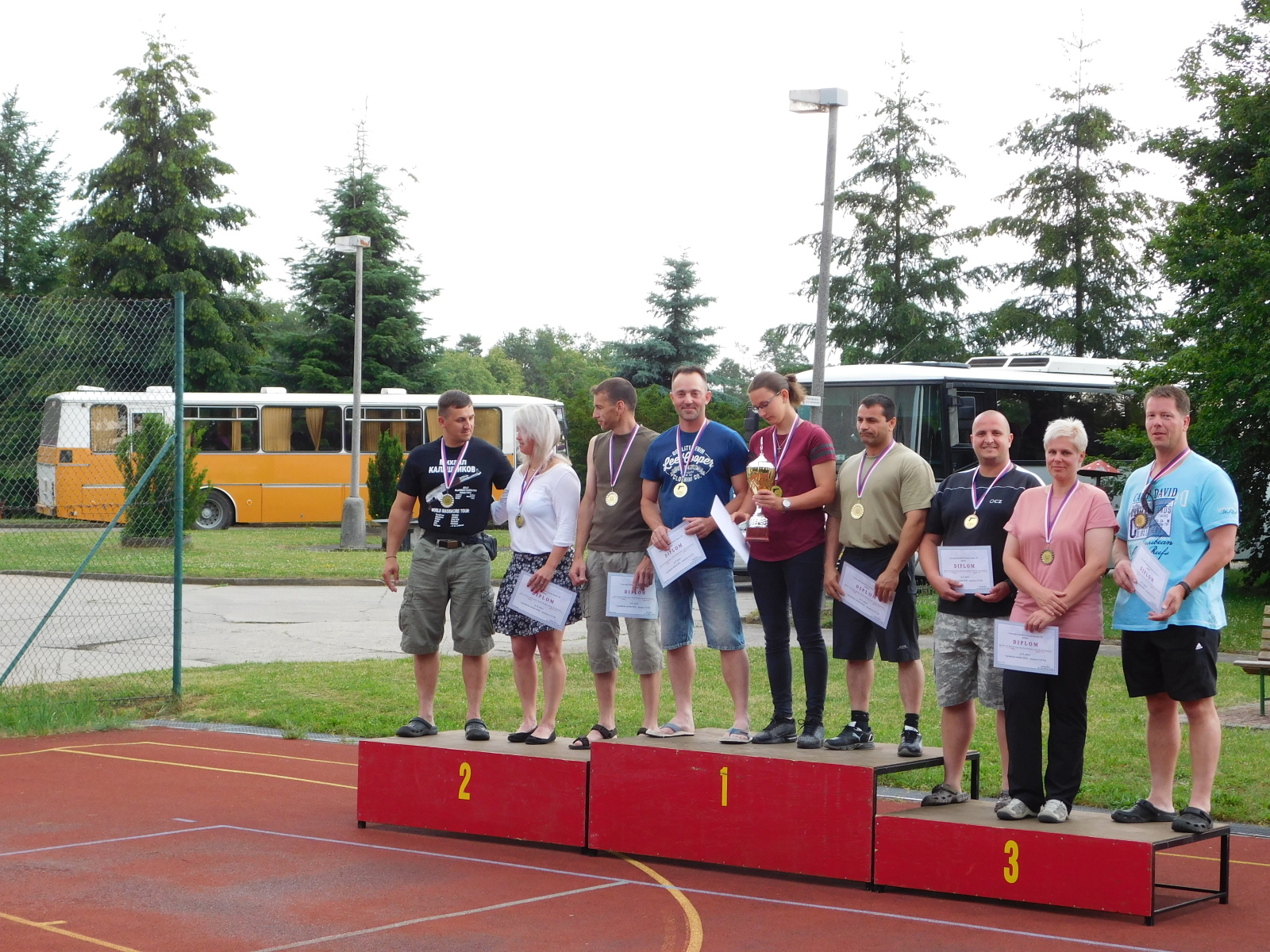Nejúspěšnějším střelcům předával v areálu Zotavovny Pracov medaile, poháry a diplomy velitel přeboru Alexandr Vidlák společně s Ladislavem Matoušem.