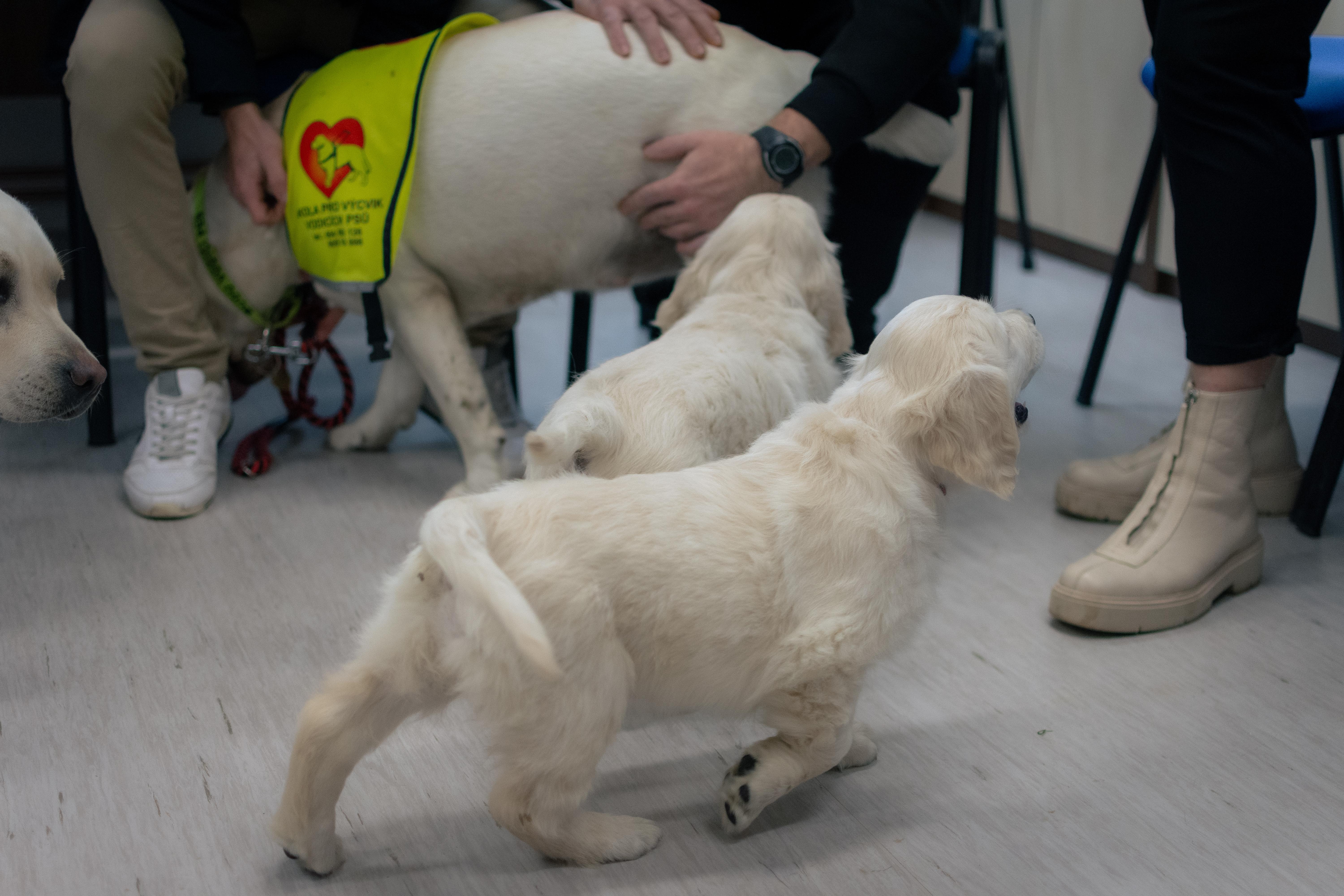 PRAHA 30. listopadu (VS ČR) - Do jiřické věznice přivezli z brněnské Školy pro vodicí psy dvě dvouměsíční fenky zlatého retrívra – CiniMini a Crazy, o které se budou příštího tři čtvrtě roku starat čtyři odsouzení muži z otevřené věznice. Naučí je základní povely i chování mezi lidmi. Poté půjdou na speciální výcvik a v budoucnu budou pomáhat slabozrakým a nevidomým lidem.