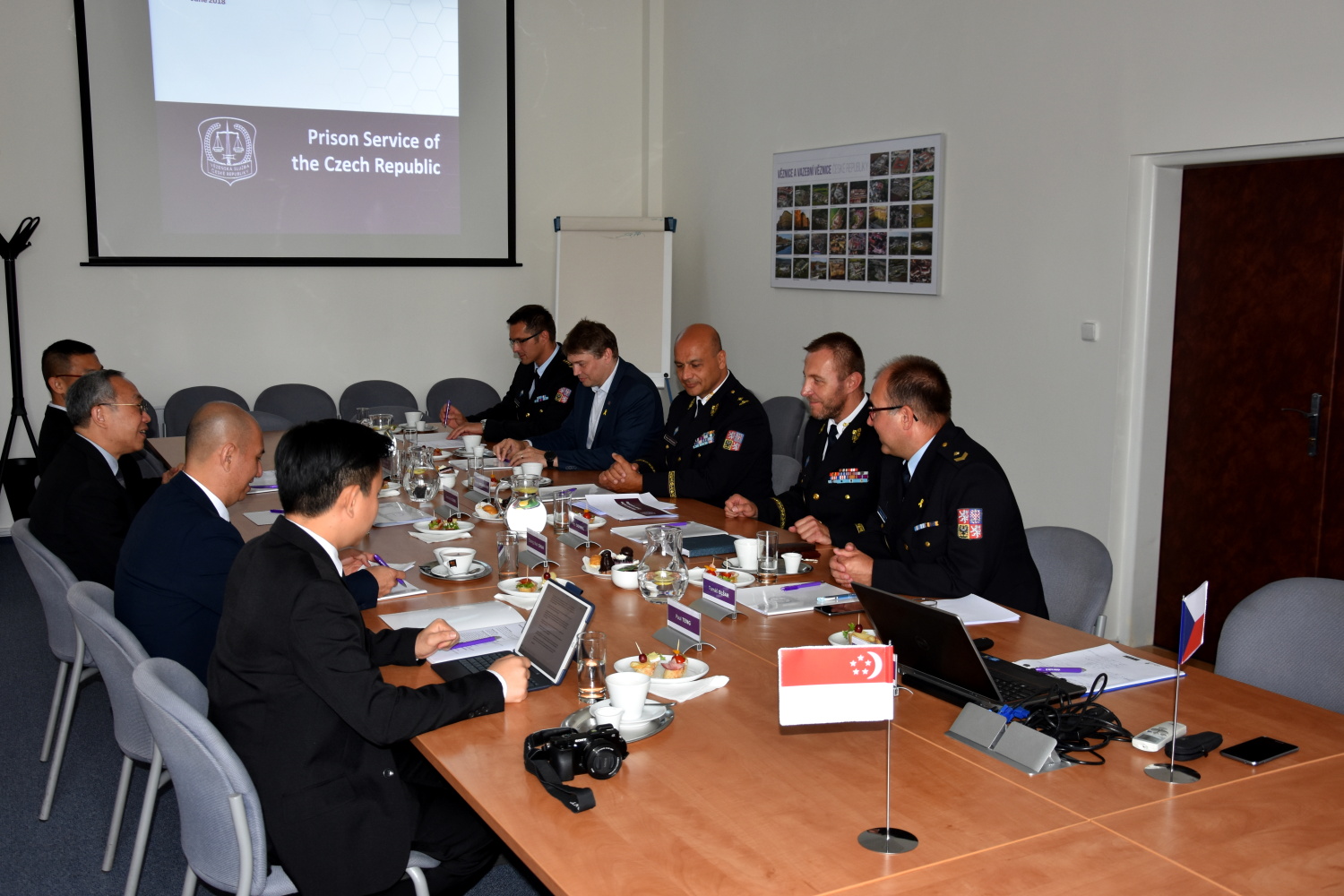 Na úvod návštěvy se zástupci VS Singapuru setkali na půdě generálního ředitelství s vedením VS ČR v čele s generálním ředitelem Petrem Dohnalem. Diskuse se týkala zejména srovnání vězeňských systémů obou států a inovativním penitenciárním projektům v obou zemích.