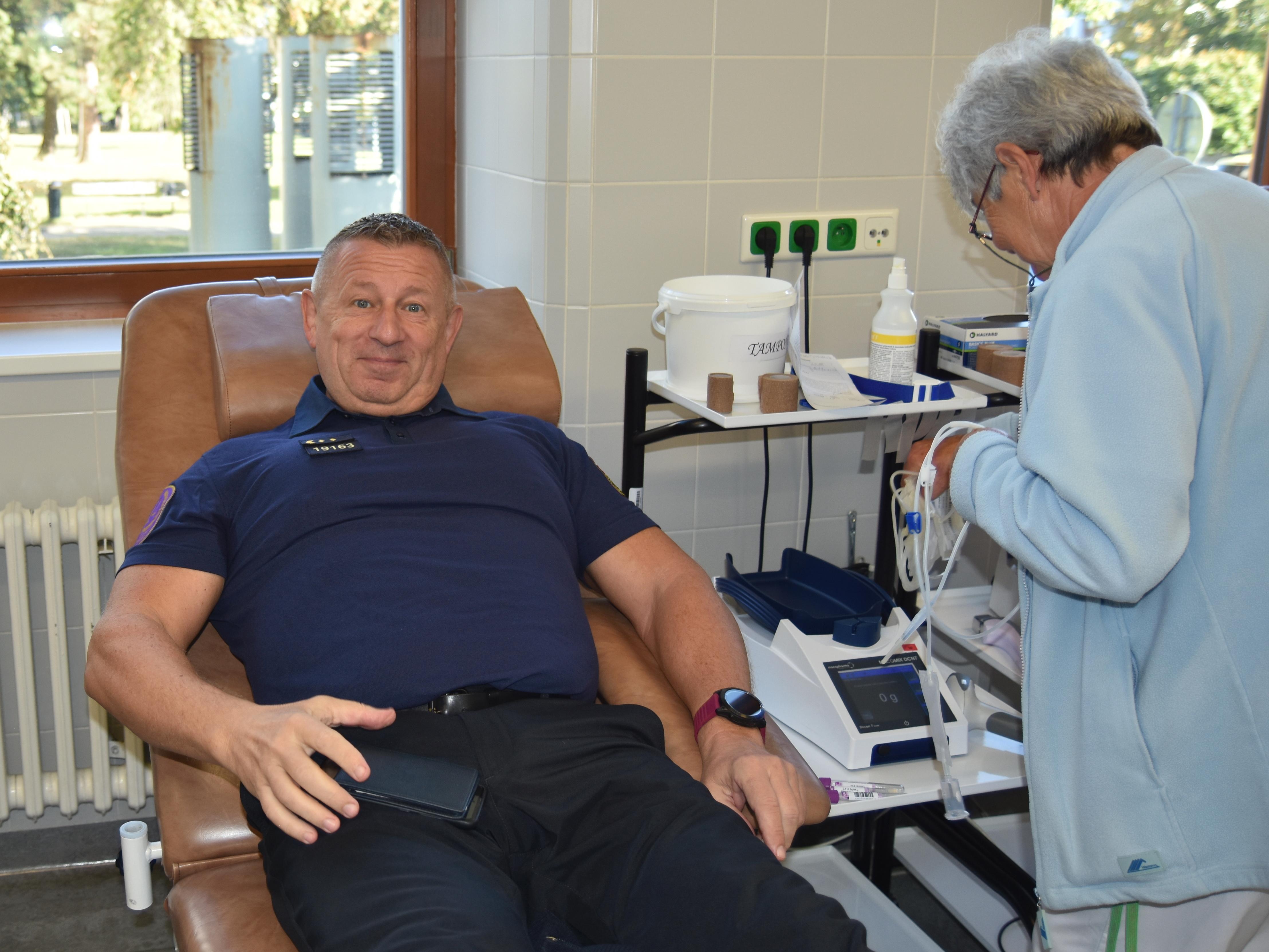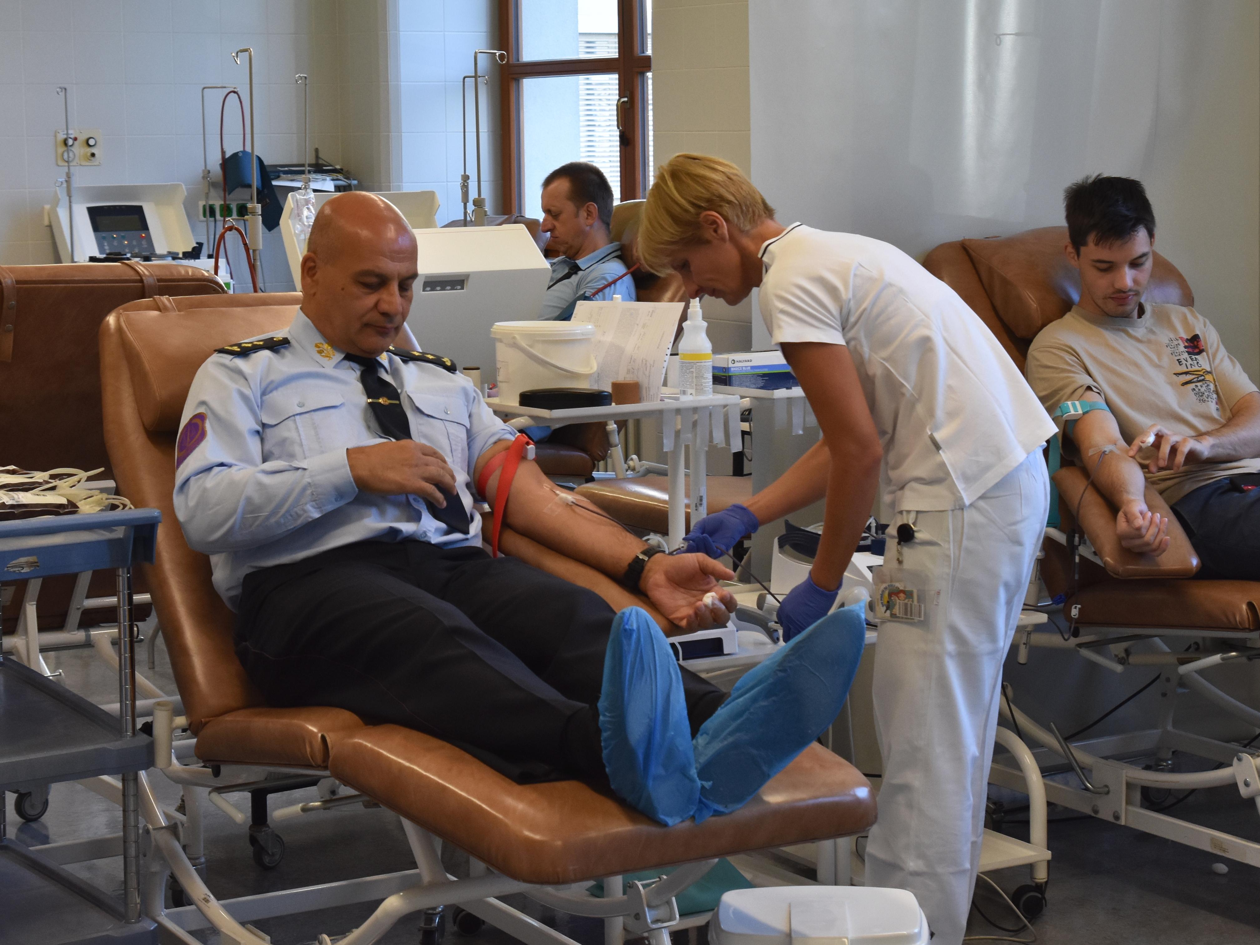 PRAHA 2. října (VS ČR) - Vezeňská služba ČR zahájila dnes v Ústřední vojenské nemocnici další, již čtvrtý ročník společného darování krve. Zúčastnilo se ho na šest desítek dobrovlných dárců z vazebních věznic Praha Pankrác a Praha Ruzyně, z věznic Jiřice, Vinařice a Oráčov, z generálního ředitelství sboru a z ministerstva spravedlnosti. Další dárci přišli darovat také do Nemocnice Louny, jelikož tamní odběrové místo spadá pod ÚVN. Krev přišel dnes darovat i generální ředitel vězeňské služby Simon Michalidis.