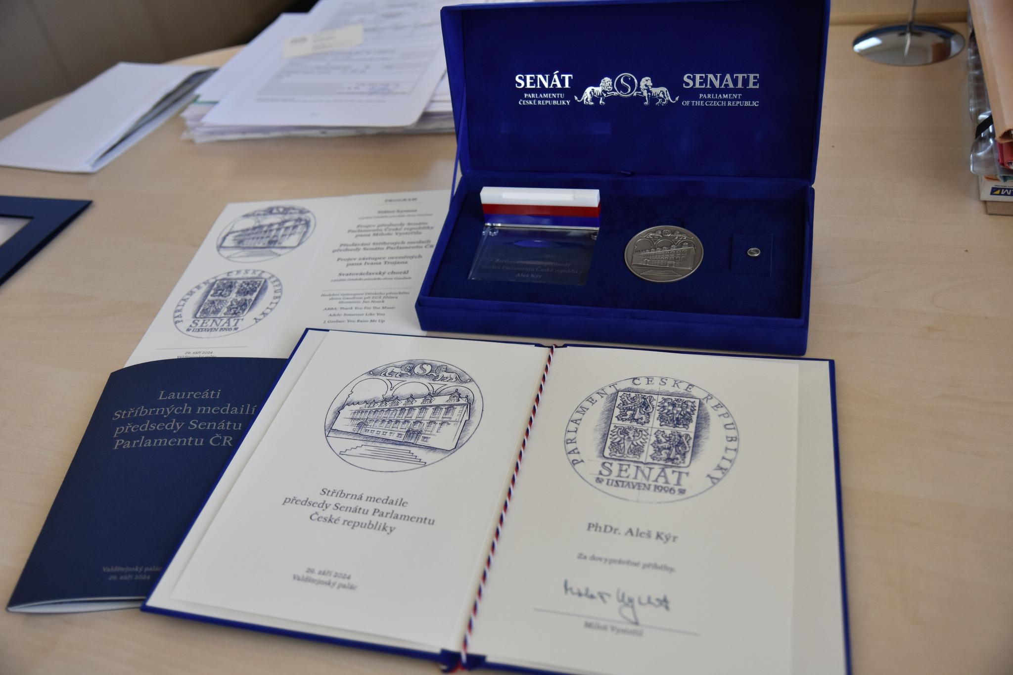 PhDr. Aleš Kýr převzal Stříbrnou medaili předsedy Senátu Parlamentu ČR
