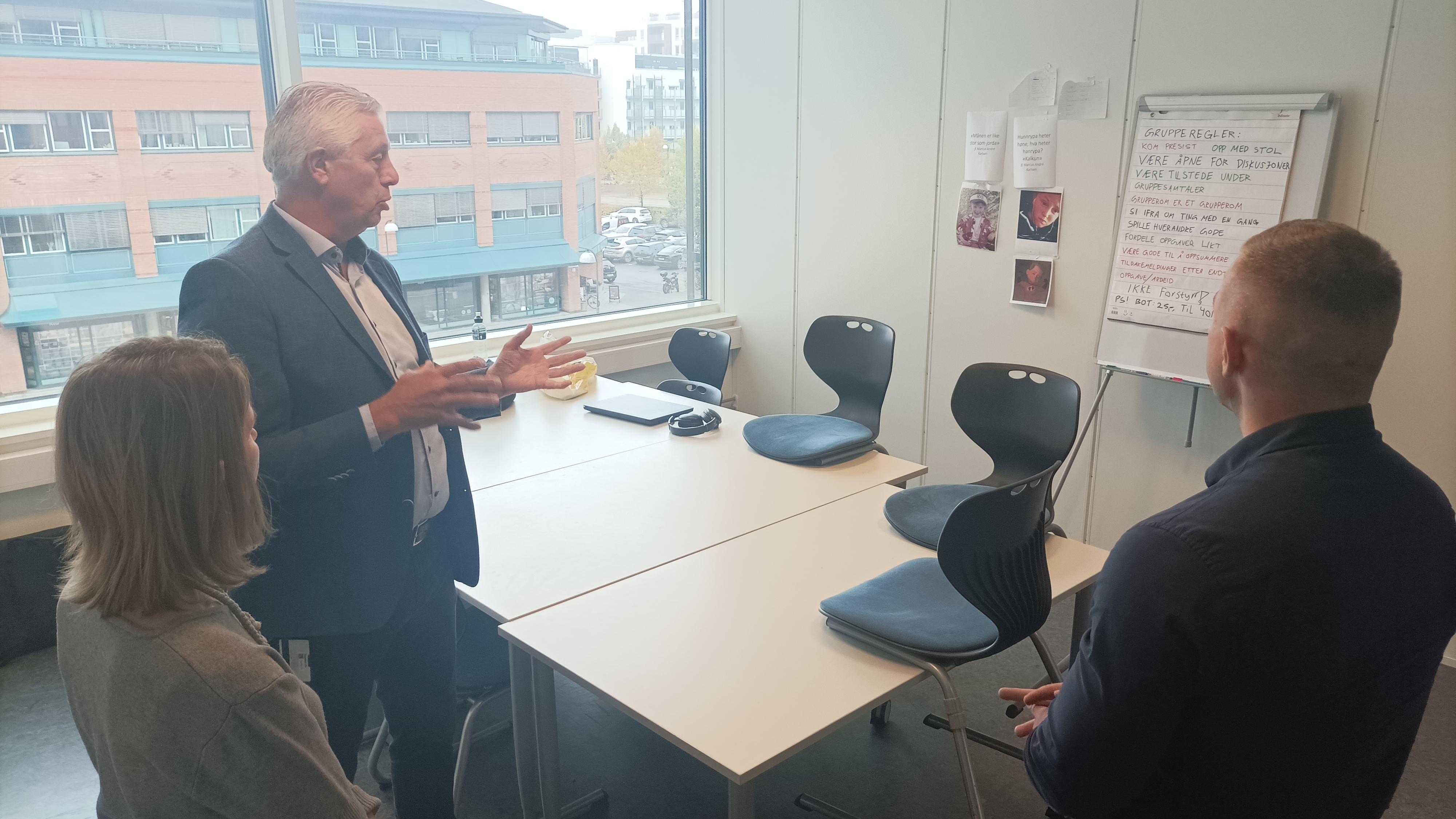 První den celá delegace strávila ve vzdělávacím středisku KRUS, kde byla podána obecná informace o Vězeňské službě Norska (počet věznic, uvězněných, typy věznic apod.), dále byly představeny některé vybrané standardizované programy zacházení (především takové, které jsou již ve spolupráci s Norskou stranou pilotovány v ČR).