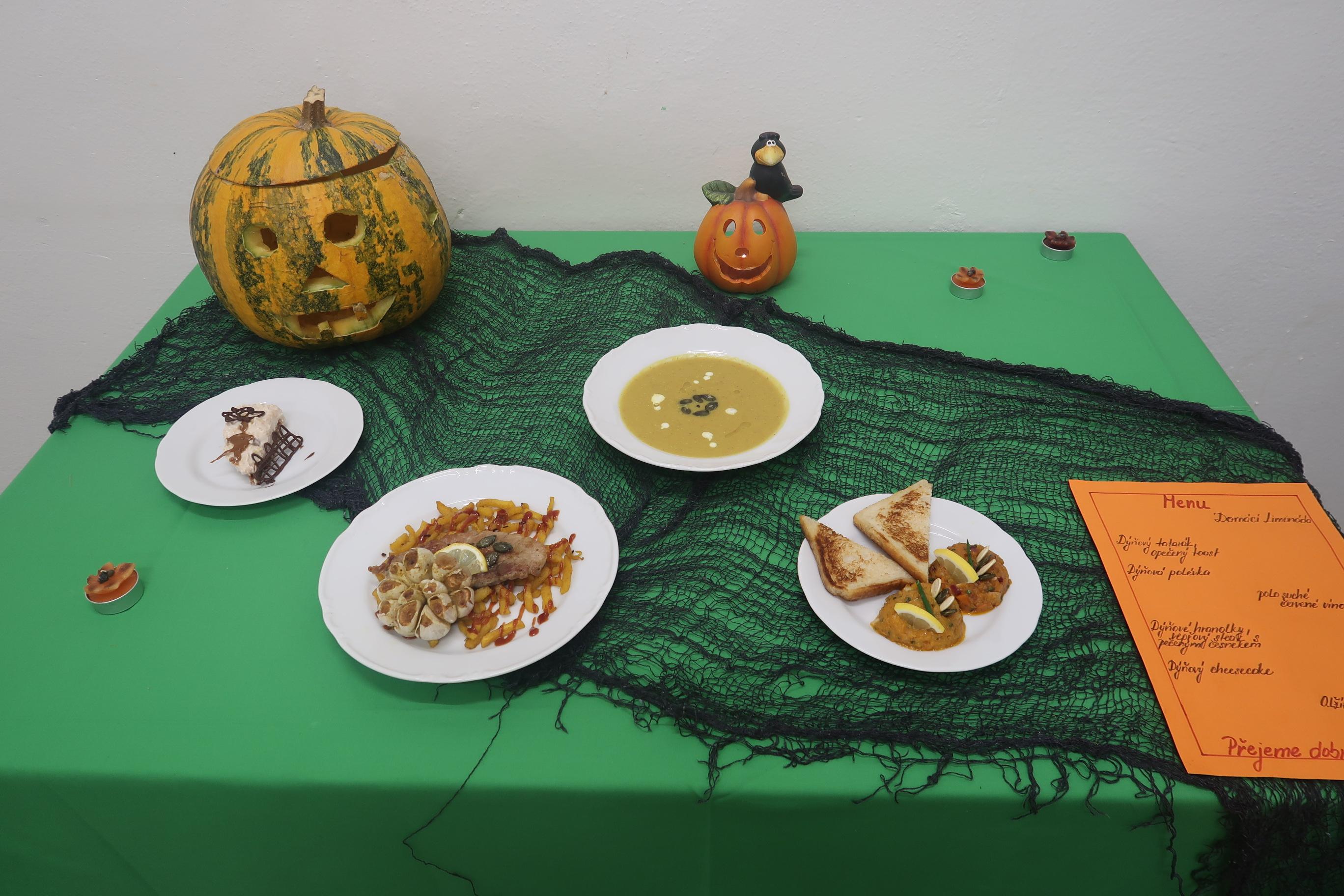 V rámci kurzu Příprava teplých pokrmů se konala soutěž mezi jednotlivými třídami. Žáci měli sestavit 4 chodové menu, které muselo obsahovat dýni. Vítězné menu se skládalo z předkrmu – dýňový tatarák s opečeným toustem polévka dýňová s restovanými semínky, hlavní chod – vepřový stek s dýňovými hranolkami a pečeným česnekem a dezert – dýňový cheesecake.