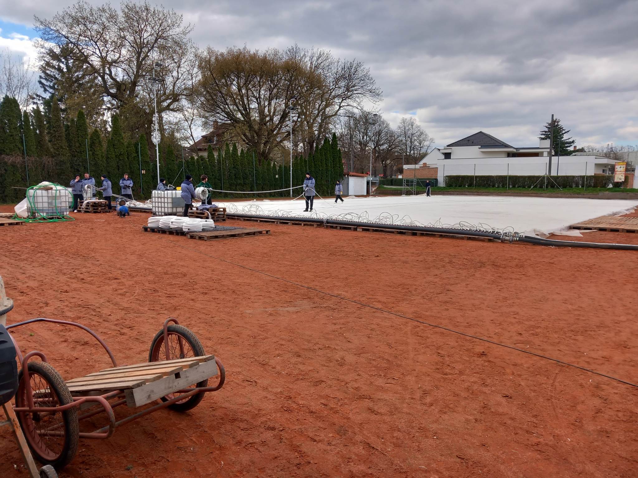 Brno 12.4.2023 (VS ČR). Ve dnech 3.-6.4.2023 odsouzení z VVaÚpVZD Brno vypomáhali s demontáží mobilního kluziště v Rajhradě.