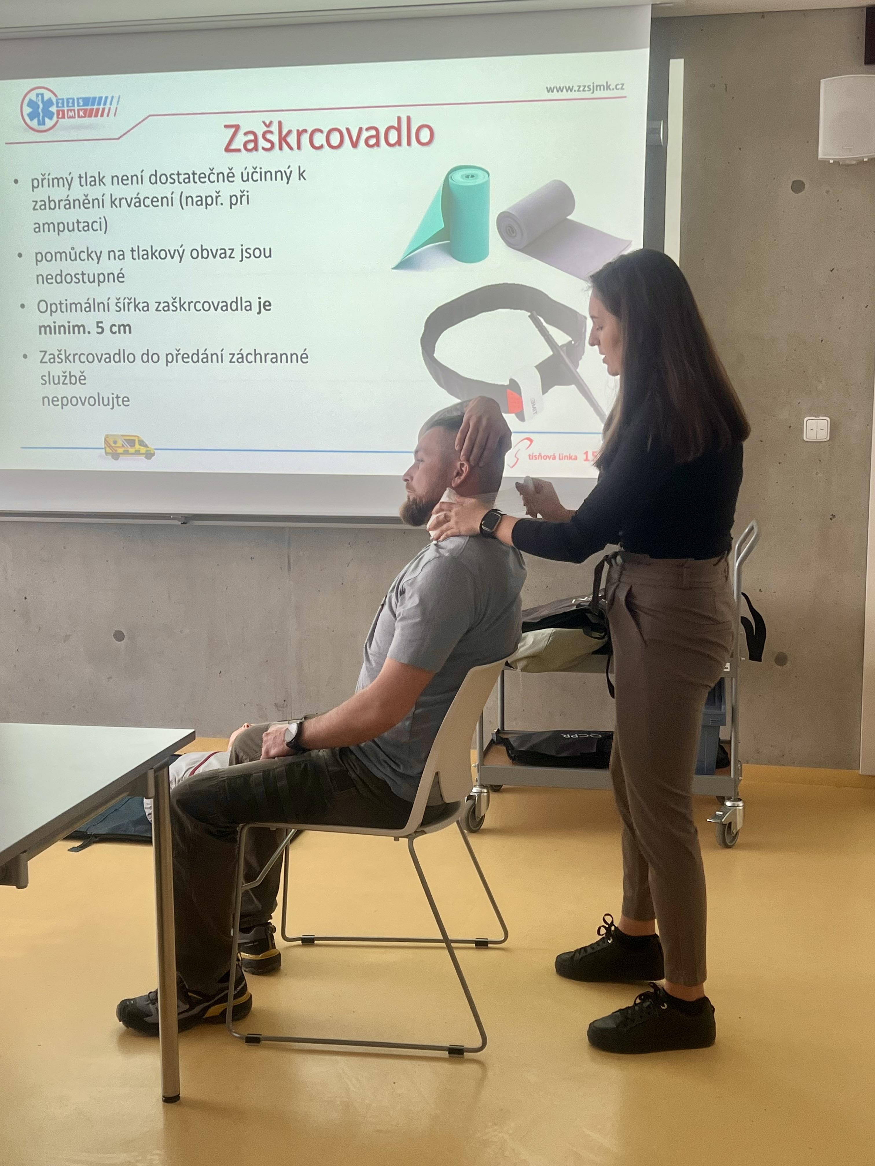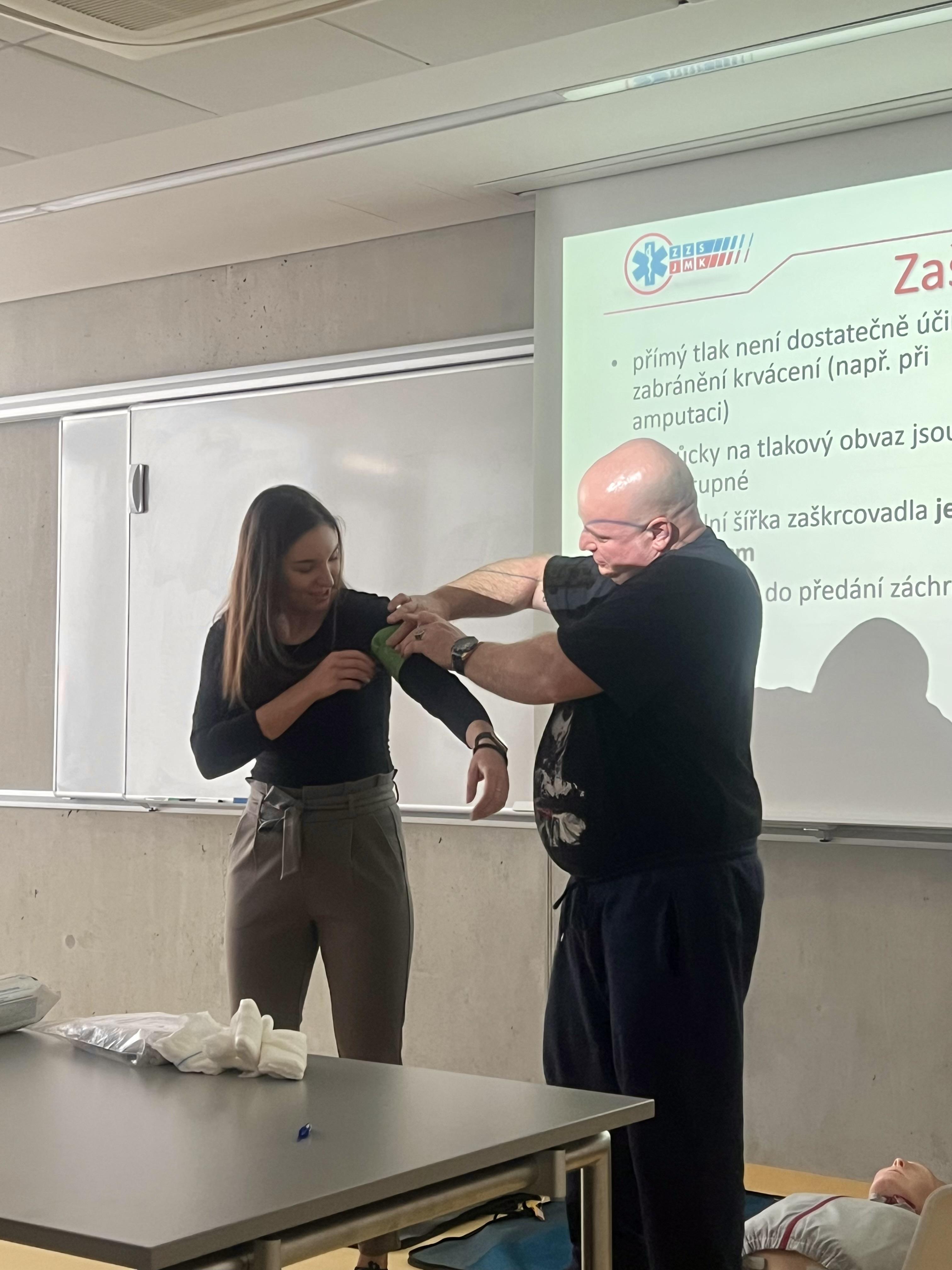 Účastníci si vyzkoušeli praktické postupy při poskytování první pomoci, včetně resuscitace, práce s defibrilátorem a zástavy krvácení. Seznámili se také s fungováním záchranného systému a moderním vybavením sanitek. Toto školení bylo cennou zkušeností, která jim umožní efektivněji reagovat v případě nouzových situací.