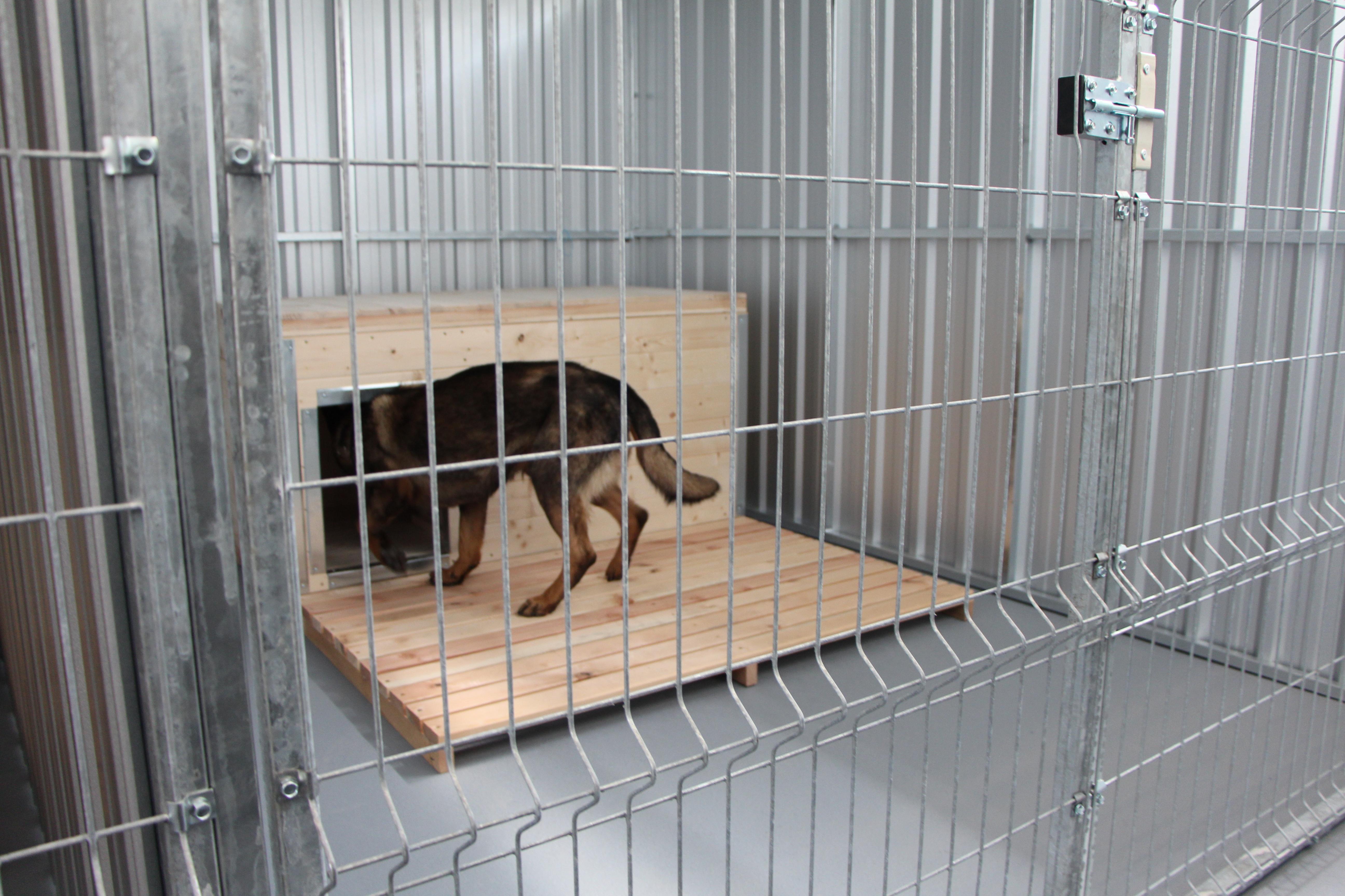 Do nevyužívaného skladu o ve výměře 110 m² bylo po stavebních úpravách naistalováno 8 kotců pro psy. Kotce o ploše více jak 7 m² mají ocelovou konstrukci a jsou vybaveny boudou s možností vložení elektrického topného panelu. Součástí rekonstrukce bylo také vybudování zázemí pro psovody tvořeného denní místností s kuchyňskou linkou a skladem materiálu.