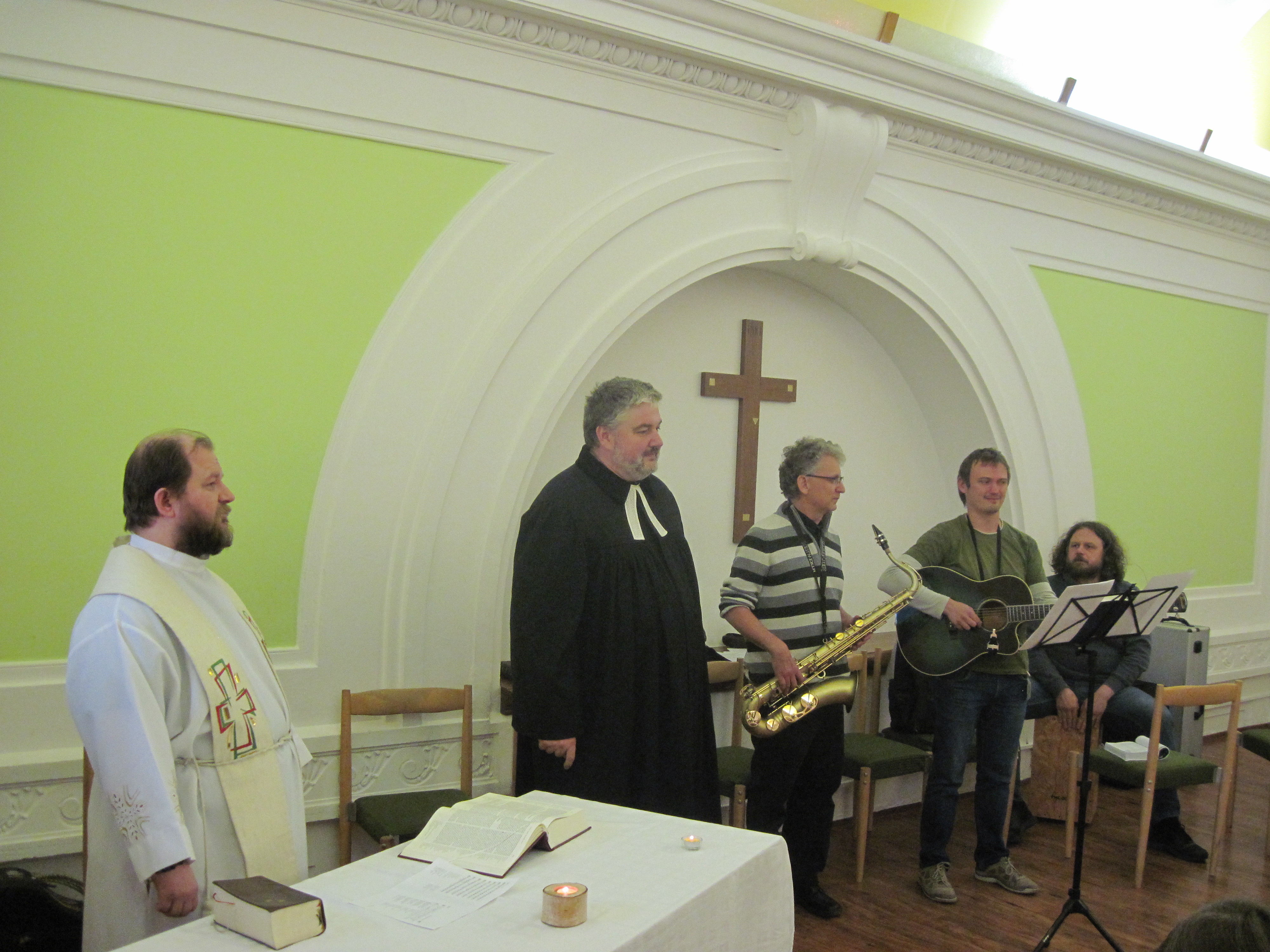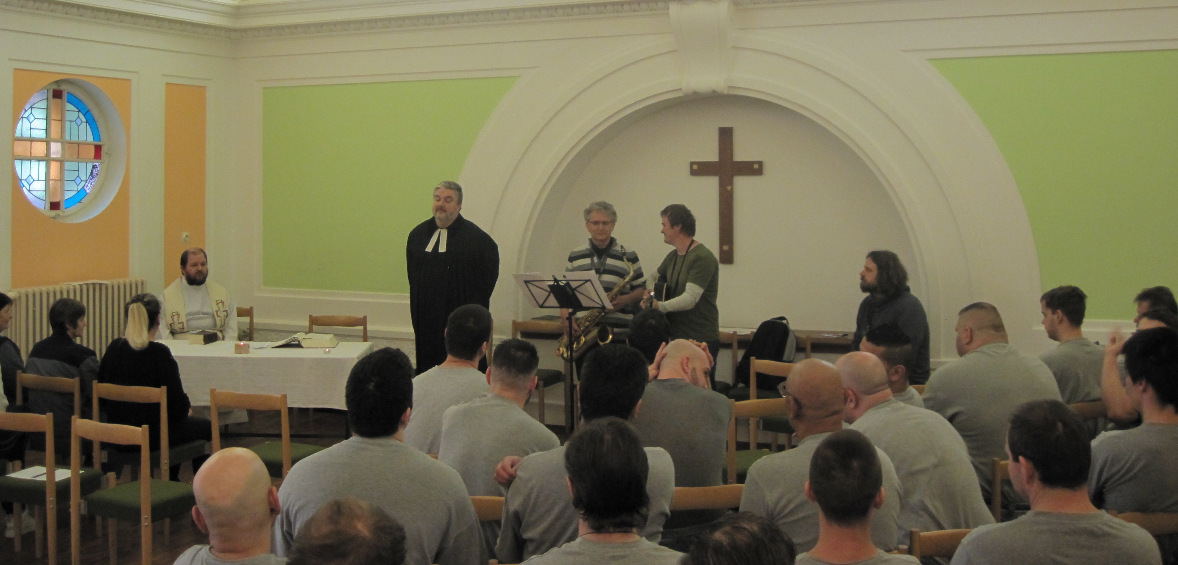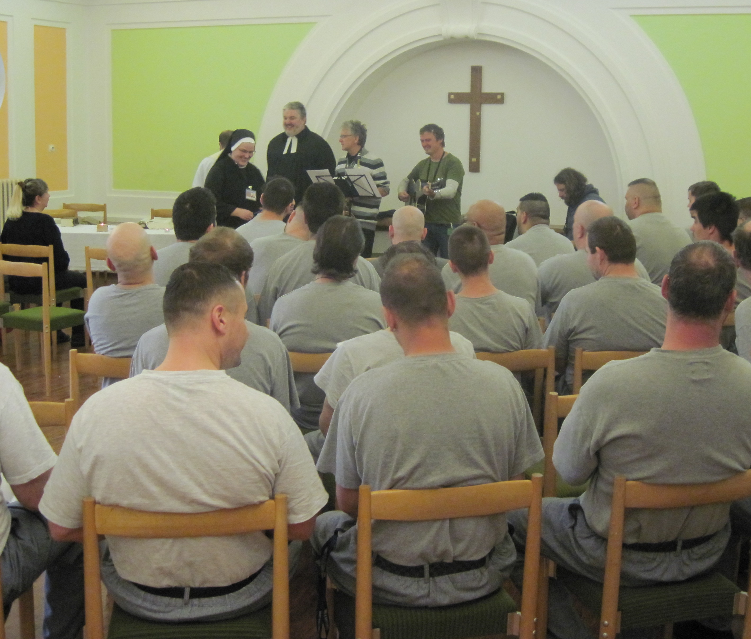 ČESKÉ BUDĚJOVICE 6. května (VS ČR) V neděli 5.5. se v naší věznici sešlo kolem padesáti obviněných a odsouzených ke slavení velikonoční bohoslužby. I když je po velikonočních svátcích, velikonoční období, dle církevního kalendáře, trvá celý měsíc. Bohoslužbu vedl katolický farář P. Madár s evangelickým farářem D. Nečilem. Kázání bylo zaměřeno na příběh apoštola Petra, který i přes svou velikou víru těsně před umučením Ježíše Krista, jej několikrát zradil. Pan farář vtáhl tento text do běžného života – i když mi často „zradíme“ sebe i své okolí, tak skrze přiznání a přijetí viny můžeme zažít velké odpuštění. Po kázání následovala společná modlitba přímluv, kde každý mohl v tichu nebo nahlas vyslovit svoji prosbu. Celou bohoslužbu provázeli hraním a zpěvem hudebníci z evangelického sboru v Č. Budějovicích. M. Šipanová, kaplanka