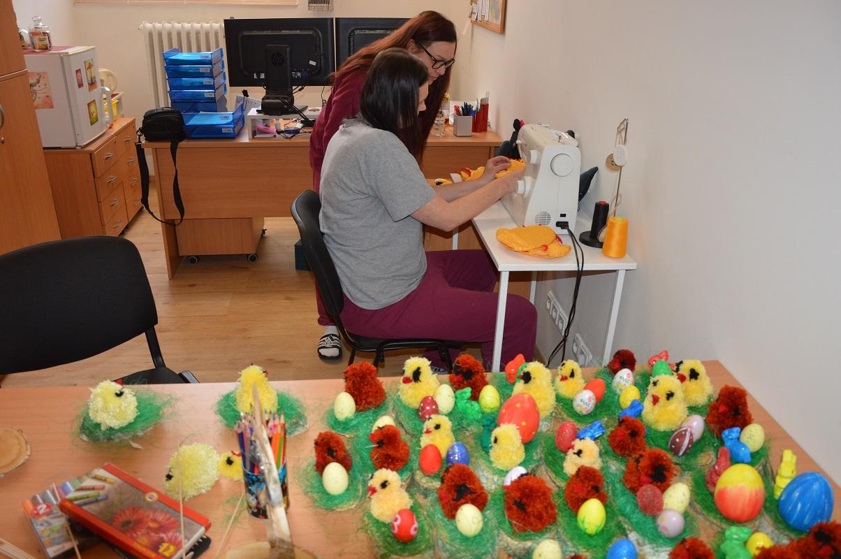 Již třetím rokem odsouzené ženy pod odborným vedením vychovatelky zhotovily velikonoční výzdobu do kanceláří zaměstnanců a do Domova pro seniory Na Biřičce před nadcházejícími velikonočními svátky. Letos se poprvé zapojili do výroby dekorací i odsouzení muži z objektu Pouchov, kteří nařezali a upravili v prostorách dílny polotovary z březového dřeva pro finální výrobky. Odsouzené ženy tyto polotovary následně v rámci ergoterapie v terapeutické místnosti dokončily.