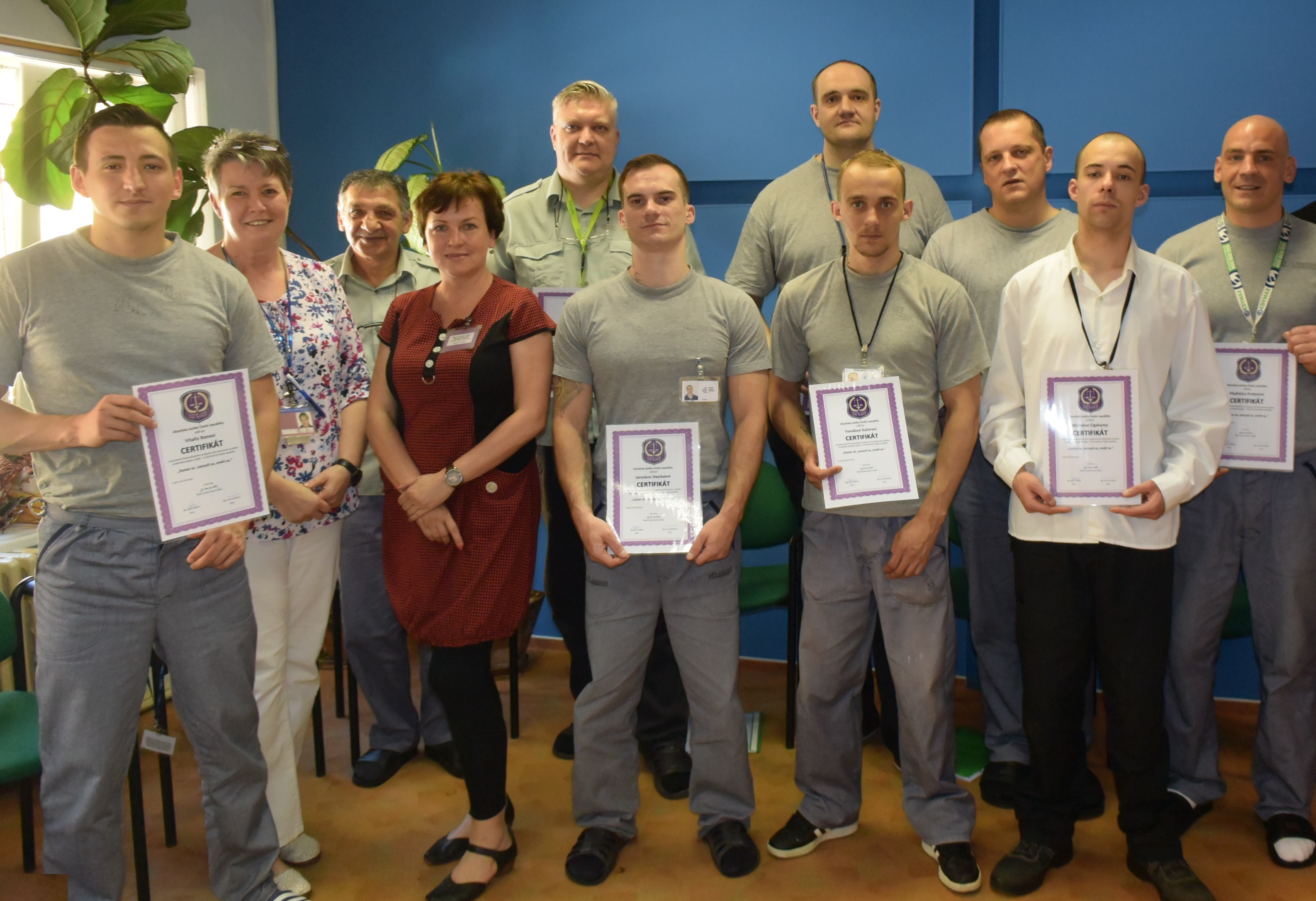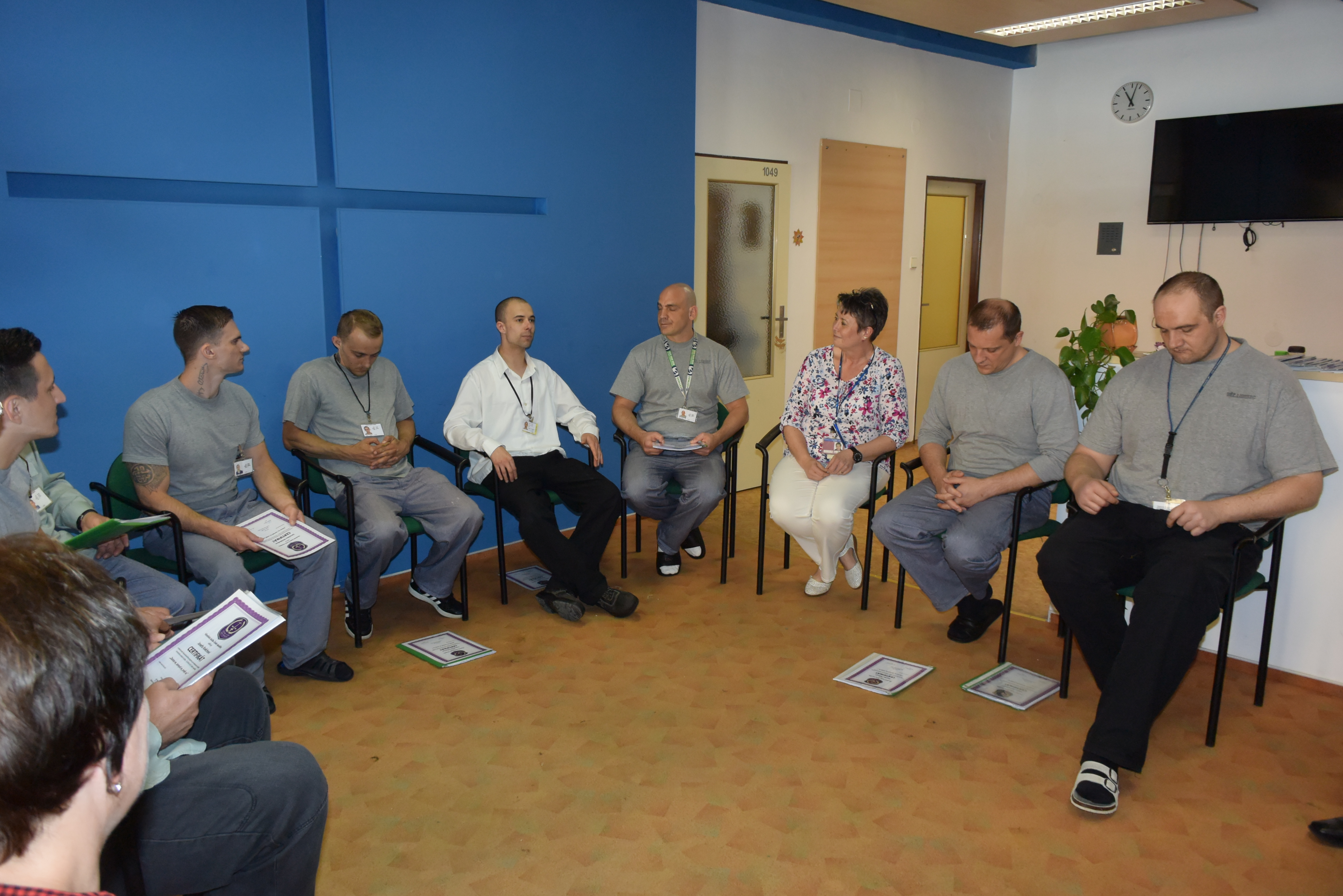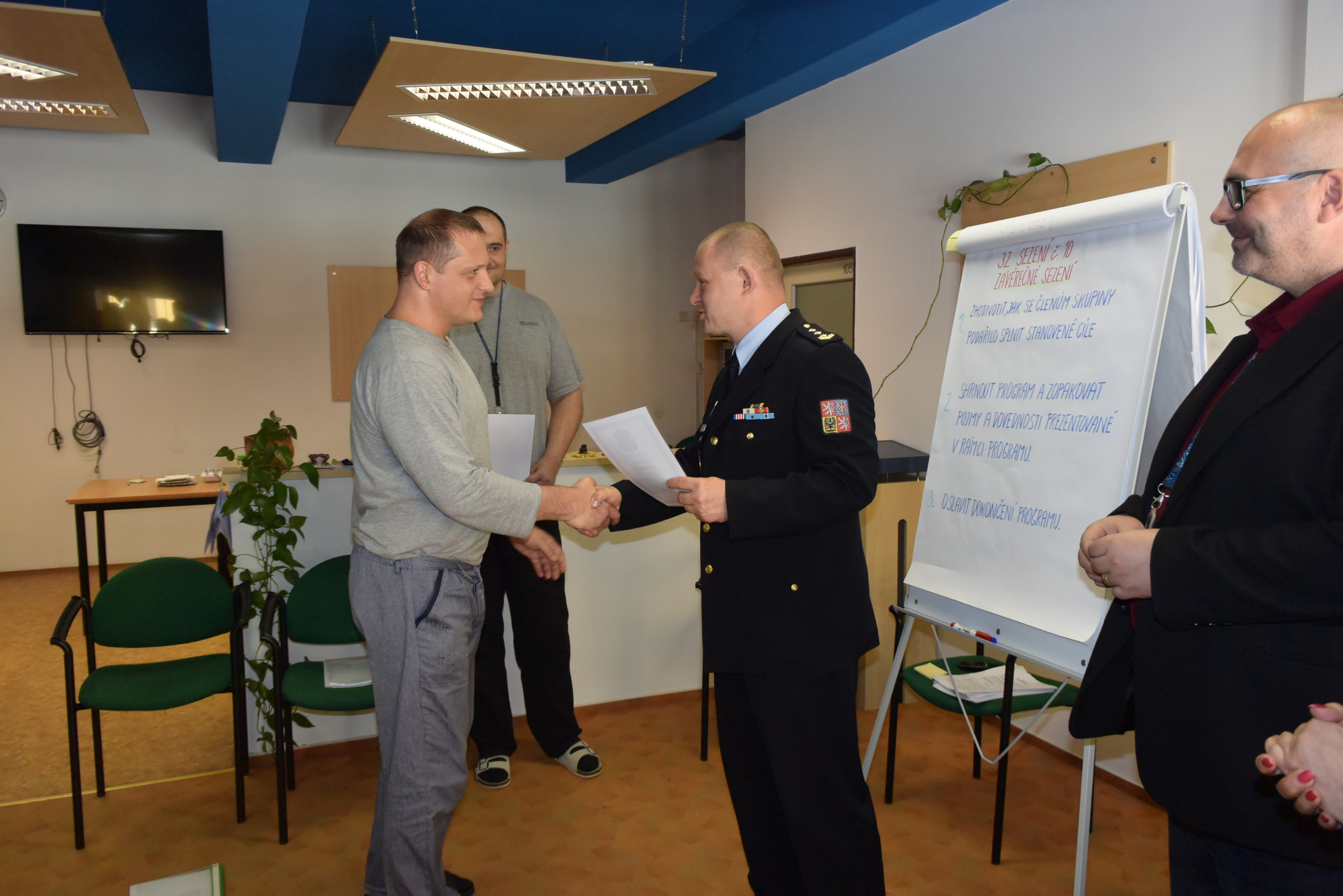 Liberec dne 4. 6. 2019 (VS ČR) – V pondělí se vybraní odsouzení účastnili závěrečné lekce resocializačního programu s názvem „3Z“ neboli „zastav se“, „zamysli se“ a „změň se“. Na důkaz úspěšného absolvování programu převzalo 9 odsouzených certifikáty z rukou ředitele vazební věznice plk. Hladíka.