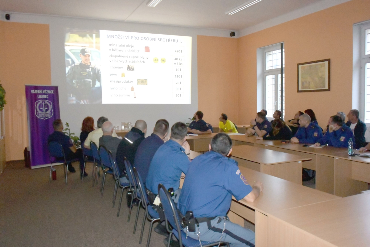 LIBEREC 13. prosince (VS ČR, Celní správa ČR) – Dnes ve Vazební věznici Liberec seznámili zástupci Celního úřadu pro Liberecký kraj vybrané příslušníky a občanské zaměstnance Vězeňské služby ČR s problematikou držení zákonem stanovených druhů zboží a jejich množstevní limity zejména při dovozu, a to jak z členských zemí evropské unie, tak ze třetích zemí. Přednášky se účastnili zástupci ze tří krajských věznic: Vazební věznice Liberec, Věznice Rýnovice a Věznice Stráž pod Ralskem a také ze školícího střediska Akademie Vězeňské služby ČR.