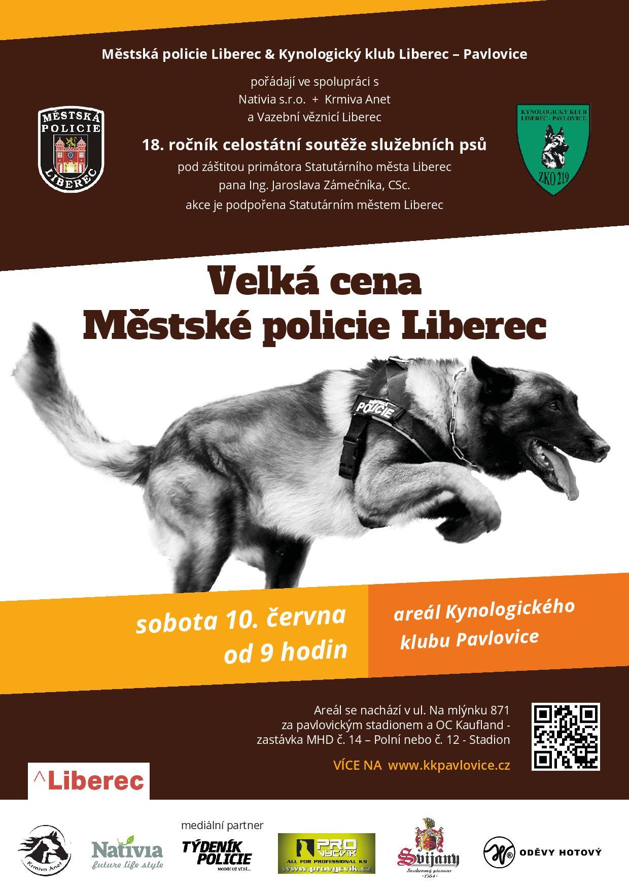 Velká cena Městské policie Liberec se konala tuto sobotu tradičně pod záštitou primátora statutárního města Liberce pana Jaroslava Zámečníka. Letošního 18. ročníku se zúčastnilo celkem 21 služebních psů se svými psovody z celé České republiky. Na organizaci celostátní soutěže, kterou pořádali Městská policie Liberec a Kynologický klub Liberec-Pavlovice, se opět podílela i Vazební věznice Liberec. Služební psi po absolvování poslušnosti projevili svoji nebojácnost a odvahu při průzkumu objektu v suterénu budovy vazební věznice. Zde měli za úkol vyhledat a označit pachatele. Hodnotila se i jejich poslušnost při provádění prohlídky a výslechu pachatele a také jejich reakce, když došlo během výslechu a eskorty k útokům ze strany zadrženého. Pro veřejnost však byly nejvíce atraktivní disciplíny, kdy psi na kynologickém cvičišti v Pavlovicích vykonali zásah vůči pachateli, který se snažil ujet na jízdním kole a ukázali zadržení figuranta s protiútokem.