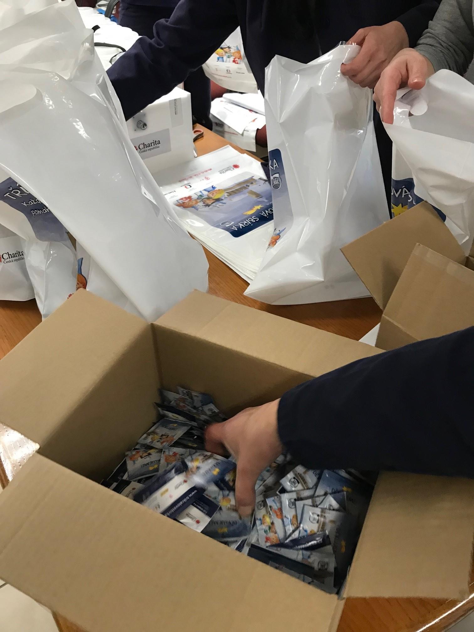 Příprava pokladniček pro Tříkrálovou sbírku