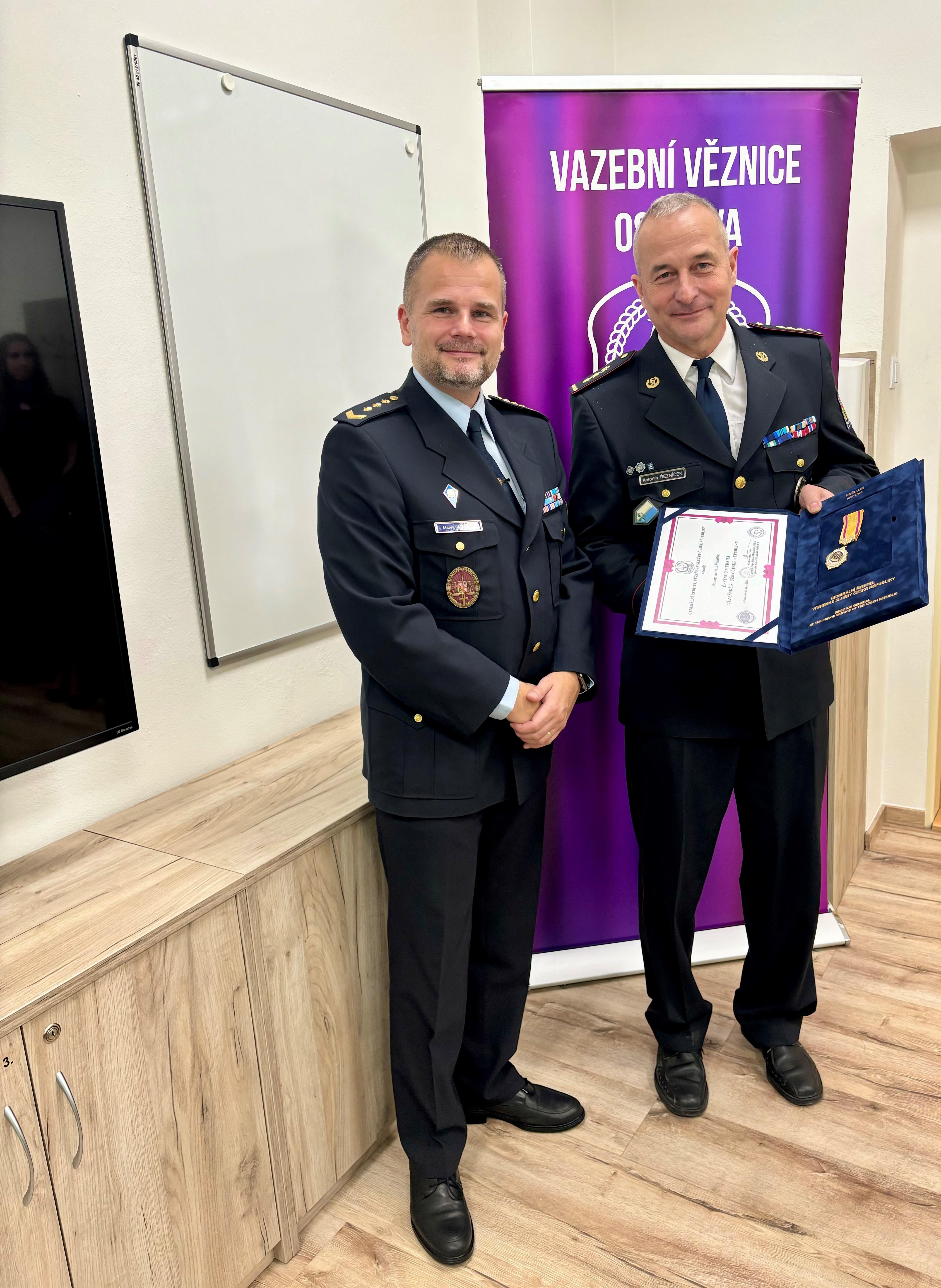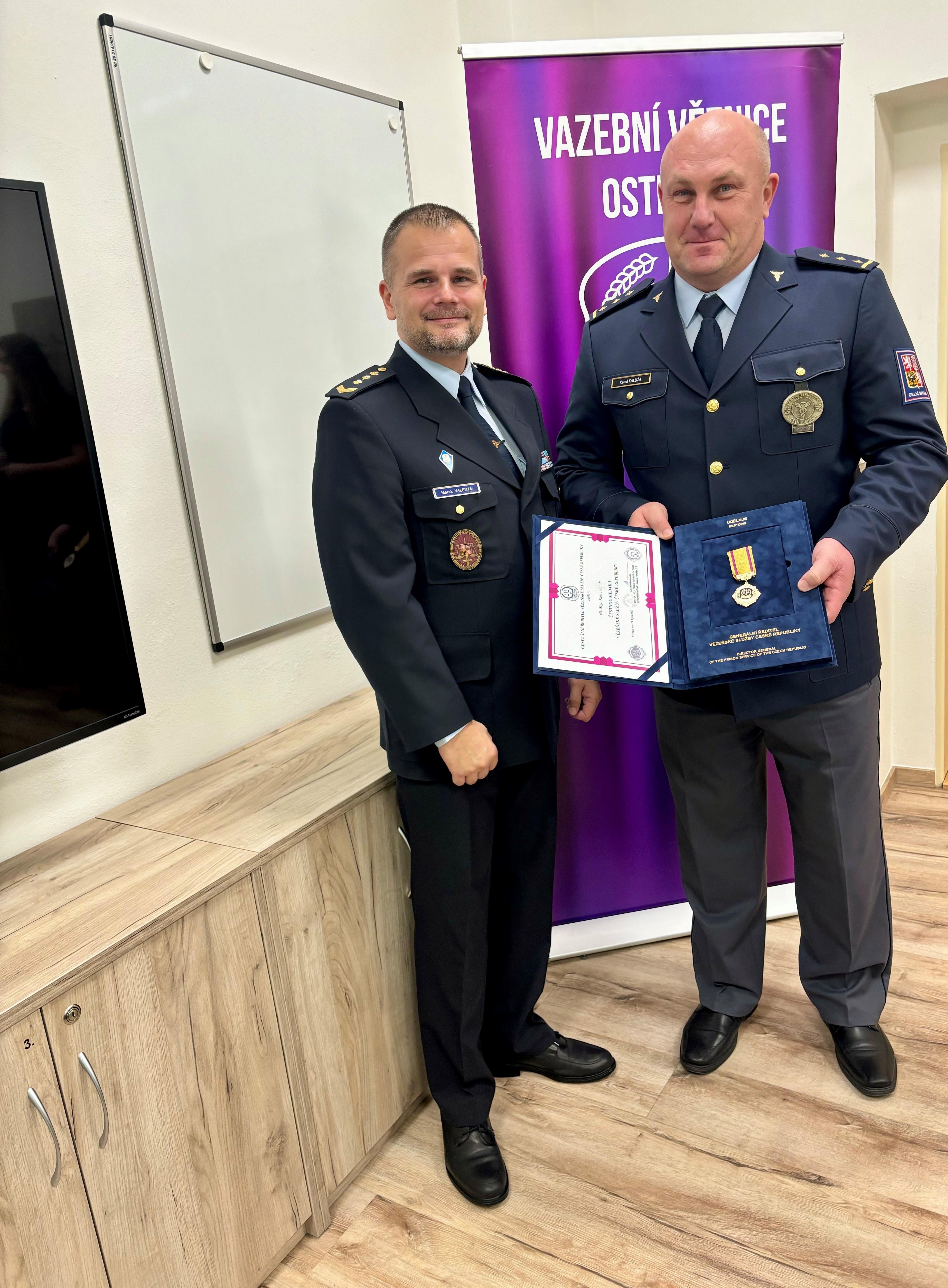 Na návrh ředitele Vazební věznice Ostrava plk. Ing. Marka Valenty generální ředitel Vězeňské služby České republiky genmjr. Mgr. Simon Michailidis, MBA udělil Čestnou medaili Vězeňské služby České republiky: