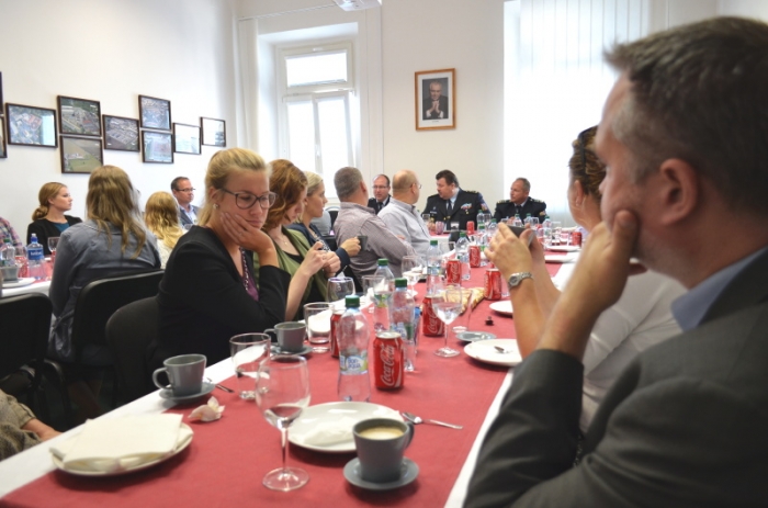 Náměstek generálního ředitele VS ČR pro bezpečnost a kontrolu plk. Marian Prokeš a ředitel vazební věznice plk. Petr Suk uvítali na půdě pankrácké vazební věznice návštěvu představitelů vězeňské služby z Norska.