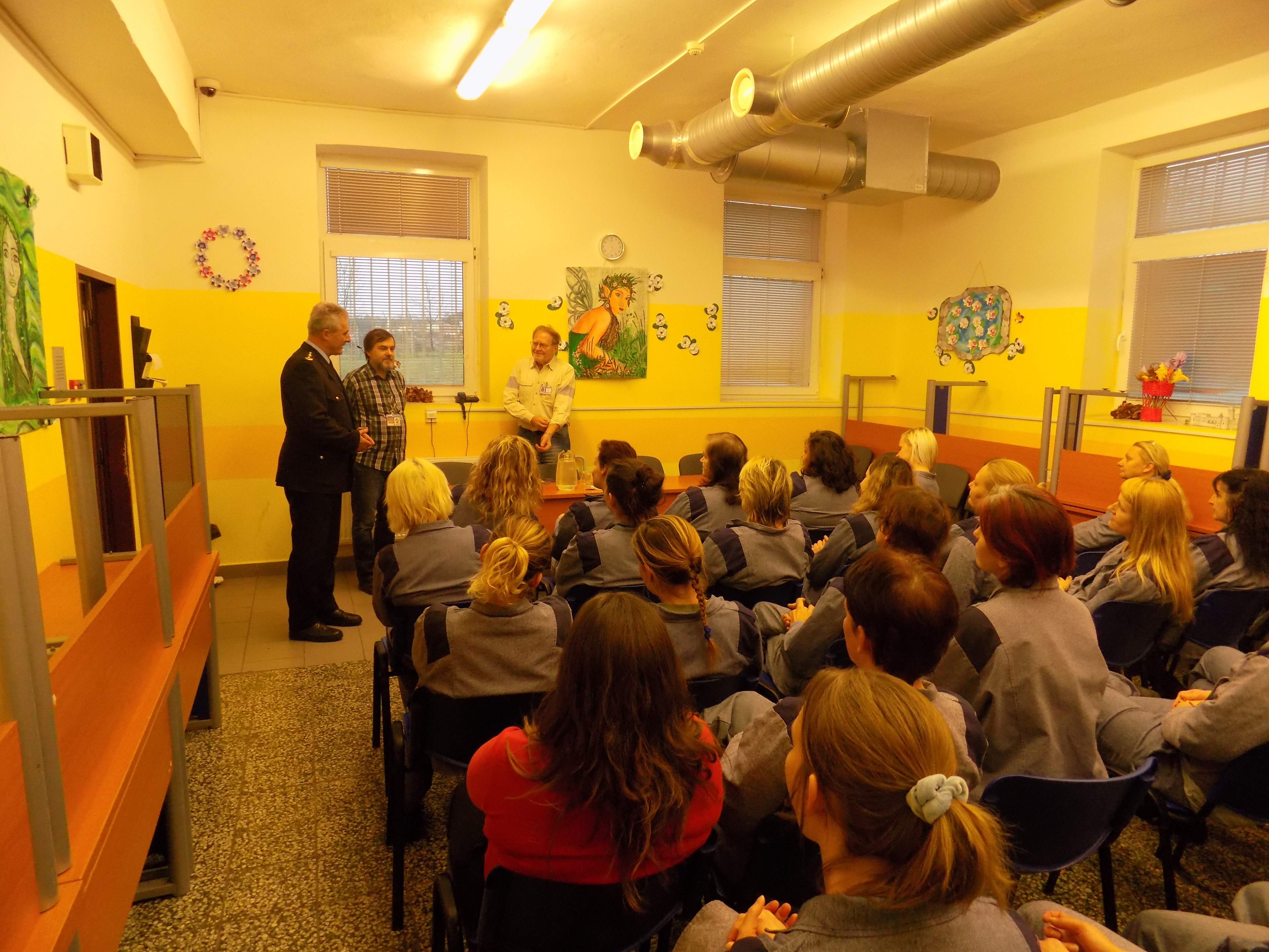 Tentokrát ho jeho dlouholetý kamarád, ruzyňský kaplan Daniel Pfann, spolu s ředitelem vazební věznice plk. Ivanem Horákem, přivedli mezi odsouzené ženy vykonávající trest odnětí svobody v objektu Velké Přílepy. Besedu s více než šedesáti odsouzenými umělec zahájil, po krátkém představení se, dramatickou četbou povídky „Případ ze soudní praxe“ z výboru Tisíc a jedna vášeň autora A. P. Čechova, při které vynikl jeho hlas trénovaný dabováním, prací v rozhlase či namlouváním audioknih. Při následné debatě střídavě vyprávěl o své herecké kariéře, o svých rolích včetně hry Otec v divadle Rokoko, kde v současné době hraje hlavní postavu. Prostor také dostaly dotazy odsouzených, které směřovaly jak do sféry profesní, tak i do soukromí Jana Vlasáka. Herec ochotně odpovídal na témata víry, hovořil o stvoření světa, ale také o přijímacím řízení svého syna na divadelní akademii (před rokem 1989), kdy i přes hladký průběh zkoušky, v pěvecké části zazpíval píseň Karla Kryla a jelikož odmítl zahrát cokoli jiného, nebyl ke studiu přijat. Nepomohla ani intervence otce.