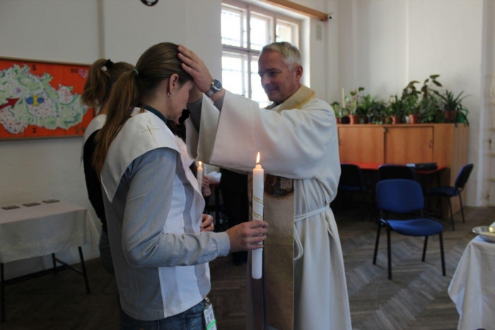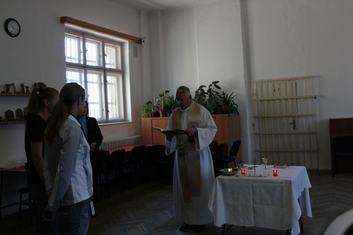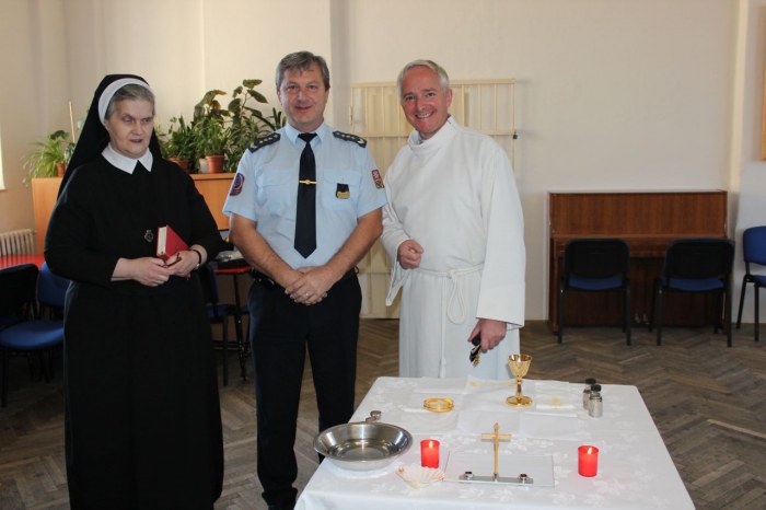 Poslední říjnový den byl pro čtveřici odsouzených žen ve výkonu trestu ve Věznici a ústavu pro výkon zabezpečovací detence v Opavě svátečním a určitě nezapomenutelným. Rozhodly se totiž, že se oddají Bohu a přijmou svátost křtu a následně biřmování a svaté přijímání. Na svátost křtu jsme všichni zvyklí hlavně u miminek několik týdnů po narození. Jen málokdy k tomuto člověk dojde v dospělosti a důvody k tomu bývají různé. Tato výjimka se stala v naší věznici a k tak důležitému kroku se rozhodly tyto ženy na základě svého vlastního přesvědčení. Když jsem se zeptala jedné z nich, co ji k tomu teď vedlo, odpovědí mi bylo, že v dětství ji do kostela často vedli babička s dědečkem. Po jejich smrti matka neměla potřebu dceru dál vést k víře, chodit do kostela a navštěvovat náboženství, když sama věřící nebyla. Později v dospělosti už byly důležitější drogy a trestná činnost s nimi spojená. Proto bere uvěznění mimo jiné i jako příležitost začít nový život s vírou. Další z nich vnímá naklonění se bohu jako něco, v co může věřit, co ji pomůže se dostat z této nepříznivé životní situace a co ji pomůže abstinovat, jelikož je ze specializovaného oddělení pro léčbu závislostí. Dlouhodobě je připravovala sestra Filoména, která obřad bere jako ocenění za svou práci. Mše, jejíž součástí byly tyto svátosti, a která byla věnována také na památku zesnulých, se zhostil Mgr. Marek Andrej Pawlica, z římskokatolické církve, který poskytuje duchovní službu v naší věznici jako dobrovolný duchovní. Všechny tři svátosti, které prováděl, byly pro něj vzhledem k prostředí premiérou, takže uznal i se sestrou Filoménou mírné napětí, nervozitu a také radost. Za kmotru šla všem Mgr. Maria Killnarová, která působí jako vychovatel – terapeut na specializovaném oddělení. Sestra Filoména, civilním jménem ThLic Mgr. Marta Truhlíková z Kongregace Dcer Božské Lásky, dochází za odsouzenými již od roku 1992 a i přesto, že je nesmírně vytížená, vždy si na tyto ženy najde čas a snaží se je přivést na lepší cestu. Určitě i také díky ní se tato čtveřice rozhodla udělat tak důležitý krok. Přestože obřad probíhal v nezvyklém prostředí, měl svou vážnost, kterou si zasluhuje. Ve věznici sice máme kapličku, kde probíhají modlitby, ale vzhledem k většímu prostoru byla zvolena kulturní místnost. Obřadu se zúčastnila také část odsouzených a nechyběl ani 1. zástupce ředitele věznice, který má pod patronátem duchovenskou péči.