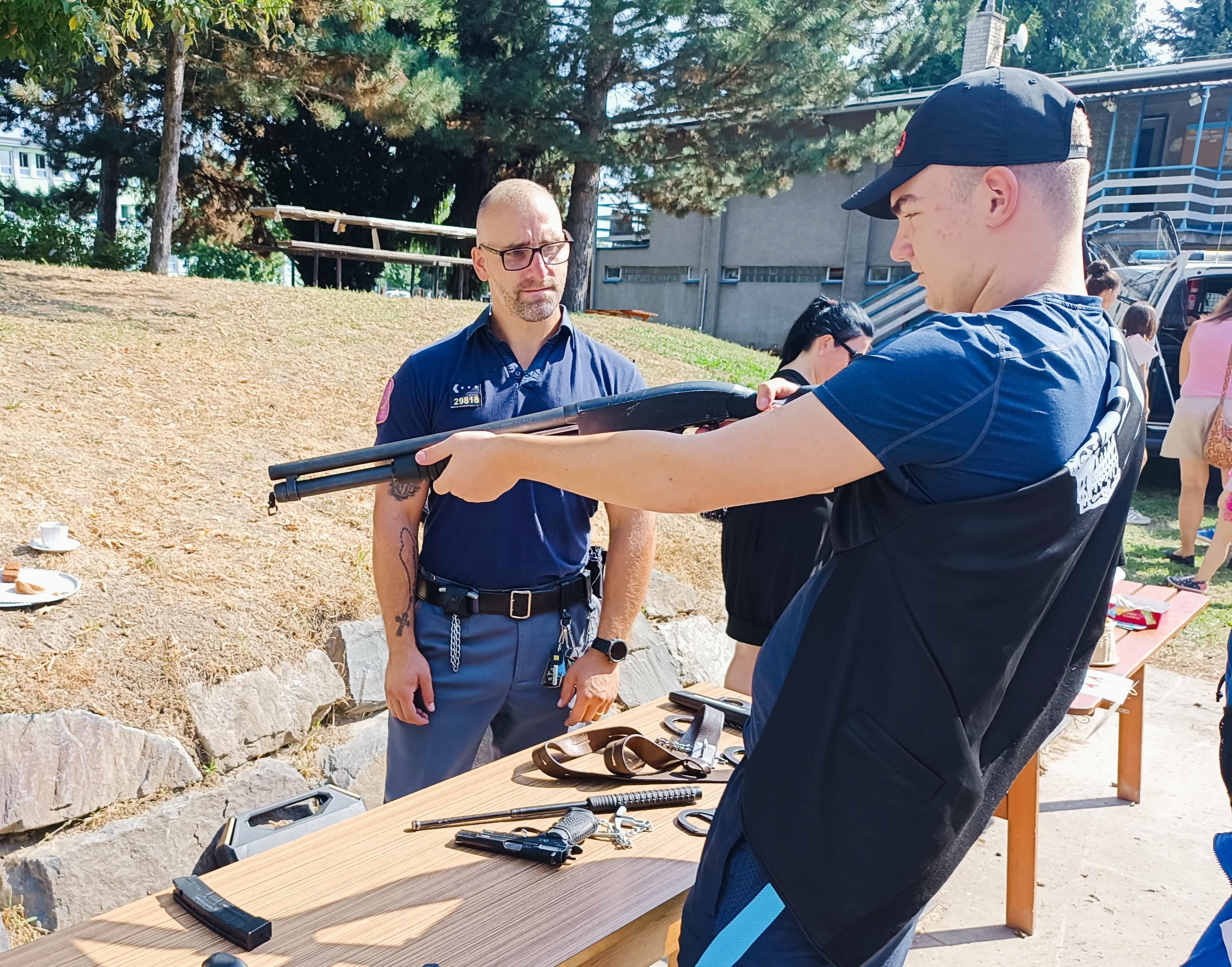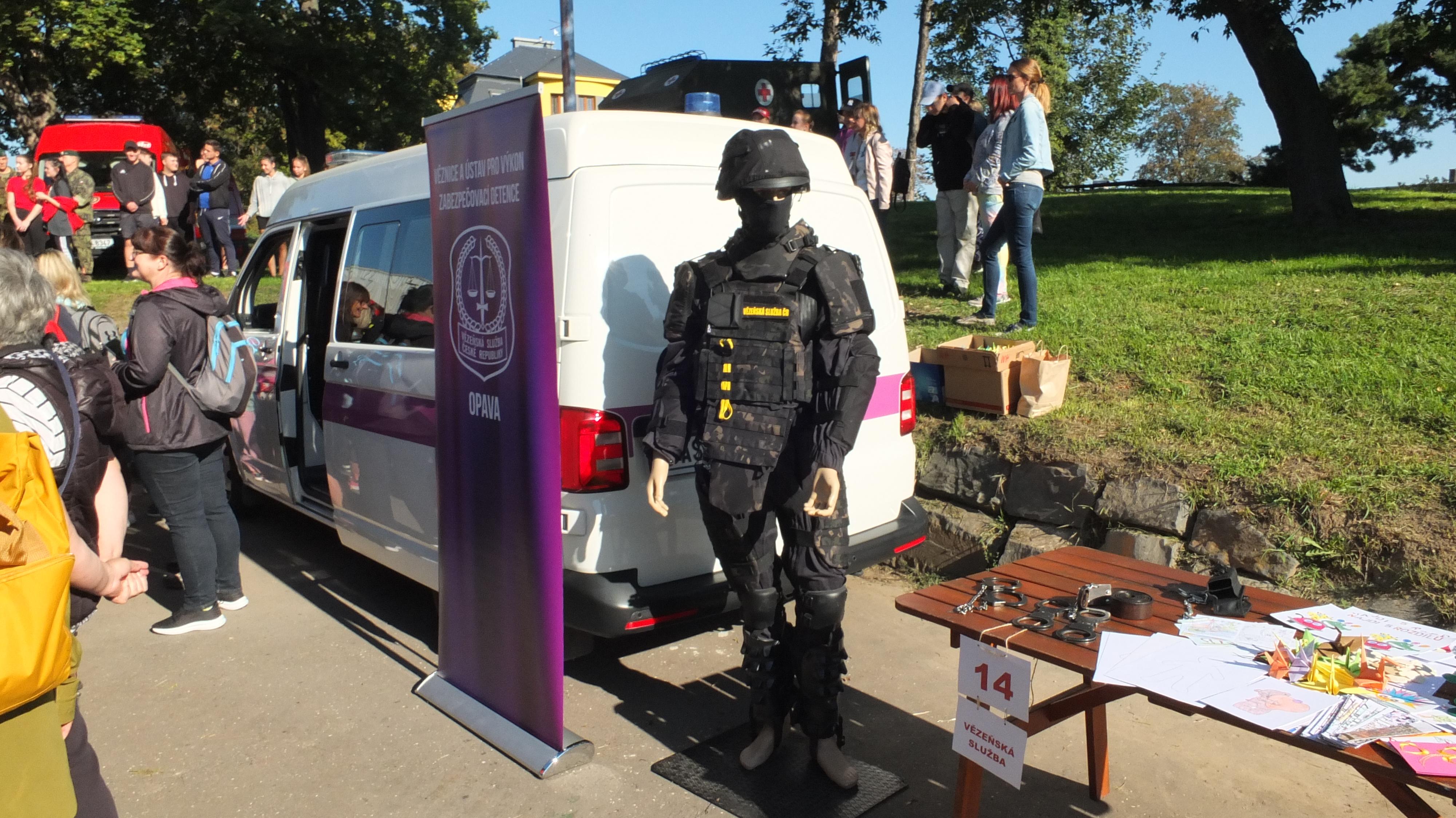 Na našem stanovišti si mohly prohlédnout eskortní vozidlo nebo zkusit pocit vězně s pouty na rukou.