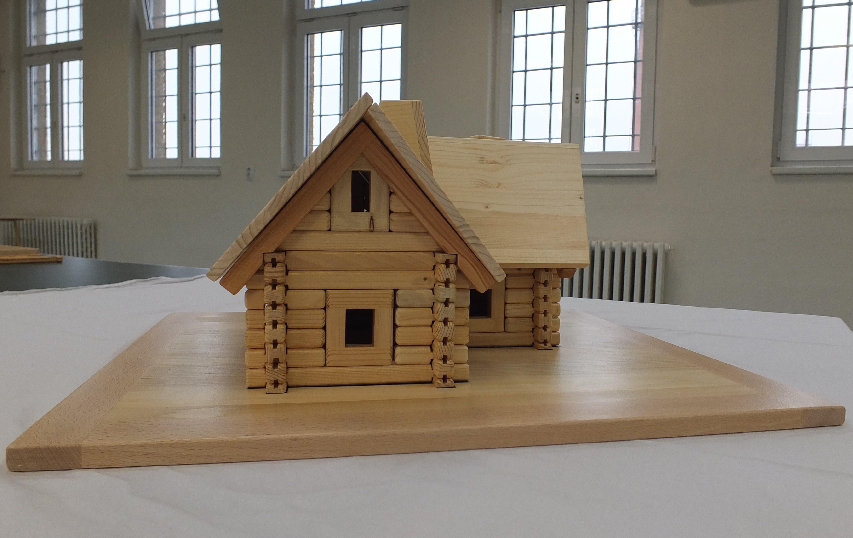 Jde již o druhou stavebnici, kterou ze smrkového dřeva vyrobili odsouzení muži v mimopracovní době pod odborným vedením vychovatele. Domeček má dvě varianty, jak jej lze postavit a využít. Nejprve mohou děti sestavit jeden větší a poté jej přestavět na dva menší podle barev a znaků, které jim napovídají, jak na to.