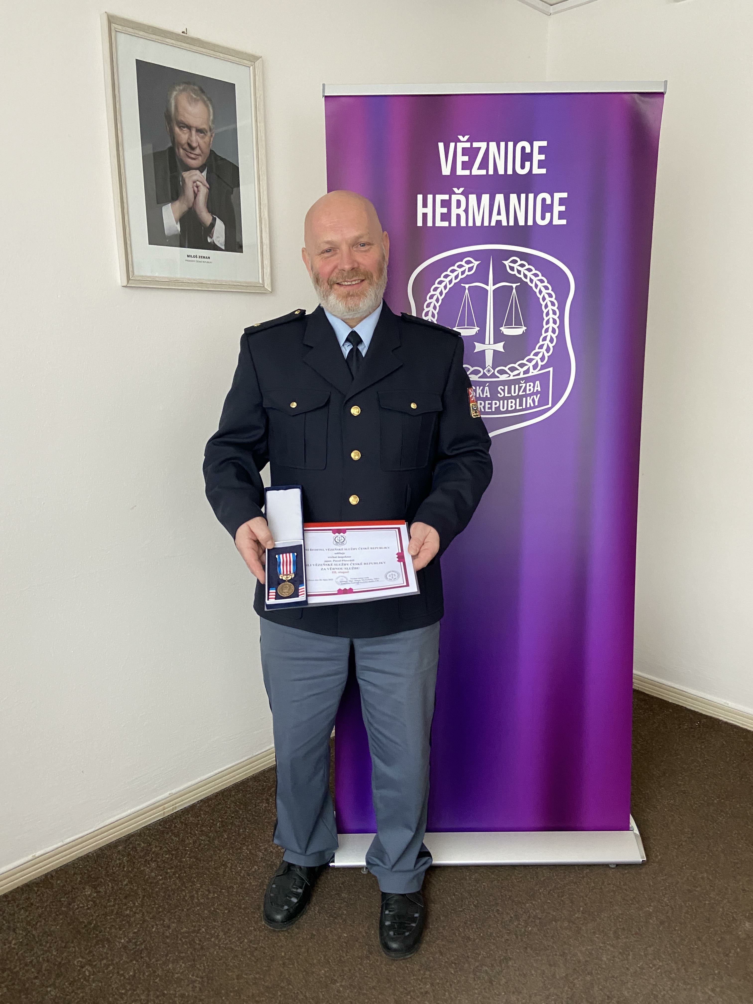 OSTRAVA 13. prosince (VS ČR) U příležitosti Dne českého vězeňství udělil na návrh ředitele Věznice Heřmanice generální ředitel VS ČR vrchní státní rada genmjr. Mgr. Simon Michailidis, MBA, medaile a plakety VS ČR zaměstnancům Věznice Heřmanice.