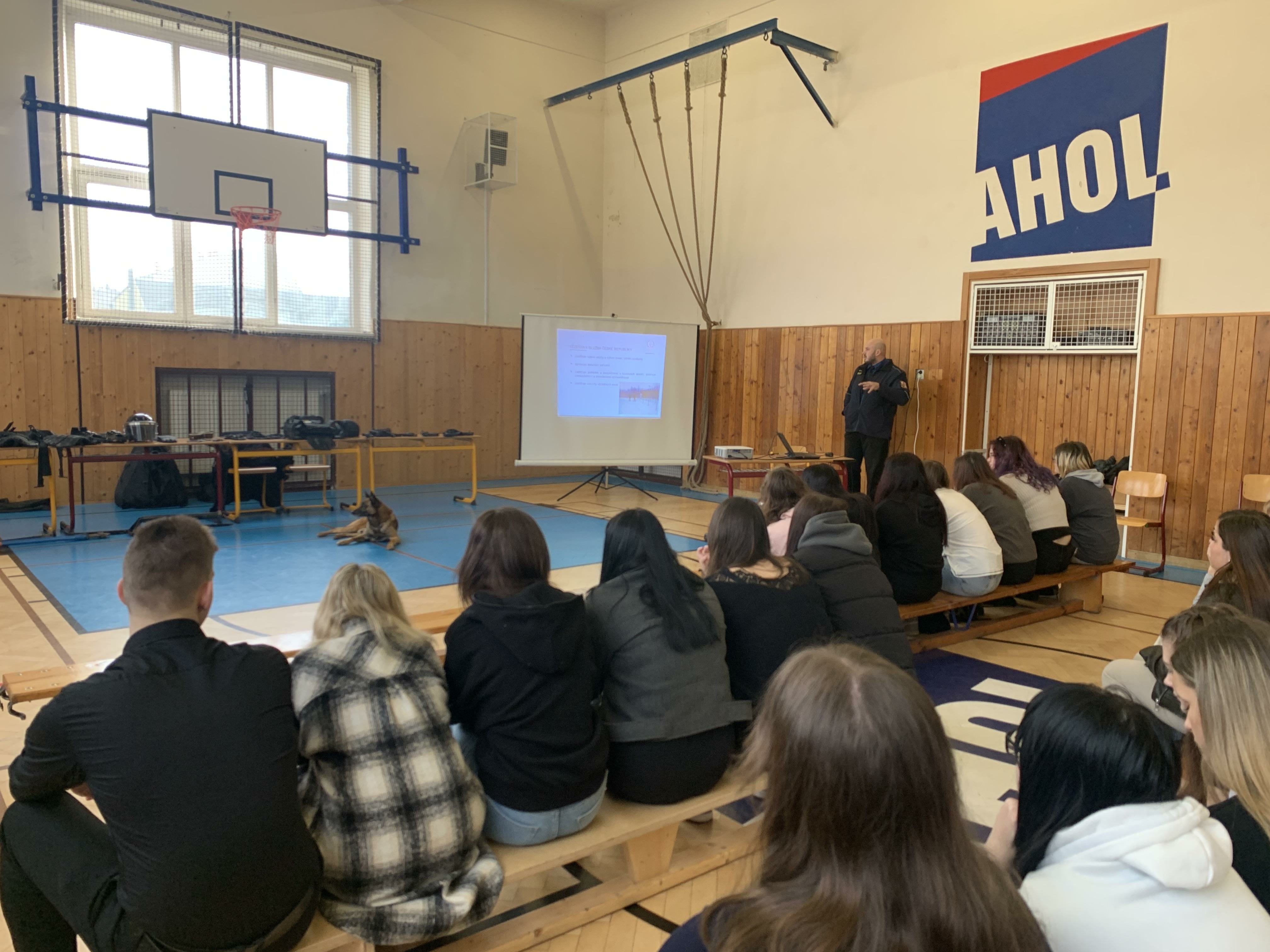 OSTRAVA 4. března (VS ČR) Dne 1. 3. 2024 se uskutečnila na Střední odborné škole AHOL v Ostravě-Vítkovicích prezentace práce Věznice Heřmanice, spojená s náborovou činností, ukázkou služební kynologie, statickou ukázkou výstroje a výzbroje příslušníka VS ČR.