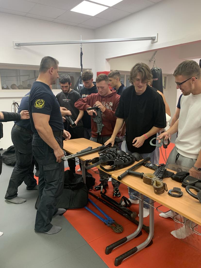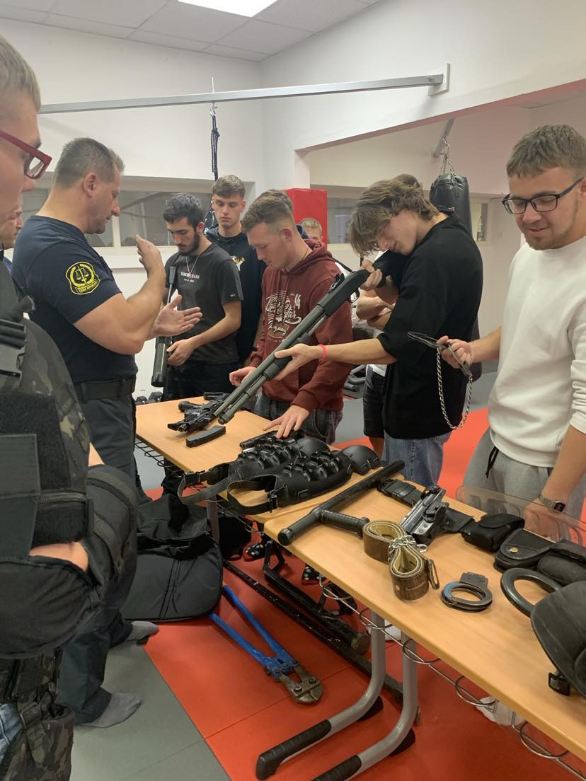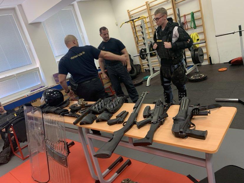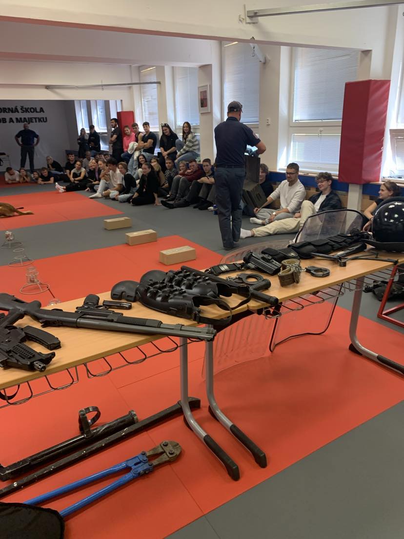 Proběhla statická ukázka výzbrojních a výstrojních součástek příslušníka VS ČR. Studenti maturitních ročníků si měli možnost vyzkoušet výstrojní a výzbrojní součástky včetně modulárního kompletu určeného příslušníkům pro eskortní činnost. Se zaujetím shlédli rovněž dynamickou ukázku služební kynologie heřmanických psovodů se služebním psem. V průběhu celé akce byl dostatečný prostor pro diskusi. Na dotazy studentů, týkajících se dané problematiky, odpovídal zkušený tým příslušníků Věznice Heřmanice.