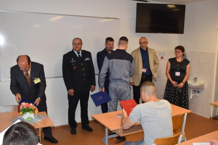 Absolventi z učebního oboru Elektrikář- silnoproud převzali výuční listy a vysvědčení o absolvování závěrečných zkoušek z rukou předsedy zkušební komise Mgr. Aleše Smolky. Předávání proběhlo za účasti 1. zástupce ředitele věznice Heřmanice rady plk. Mgr. Petra Čejky, vedoucího ŠVS Ing. Pavla Balcara a učitelů odborného výcviku.