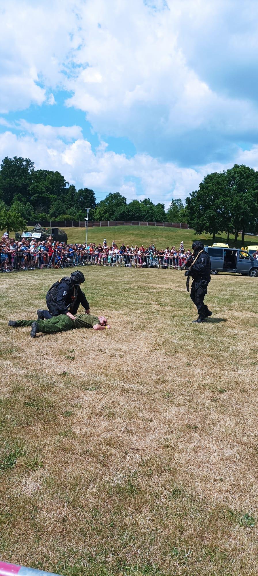 Příslušníci z Věznice Horní Slavkov předvedli v rámci dynamické ukázky jednu ze základních činností při realizaci eskorty nebezpečného odsouzeného a kolegové z Ostrova předvedli práci se služebními psy při vyhledávání omamných látek.