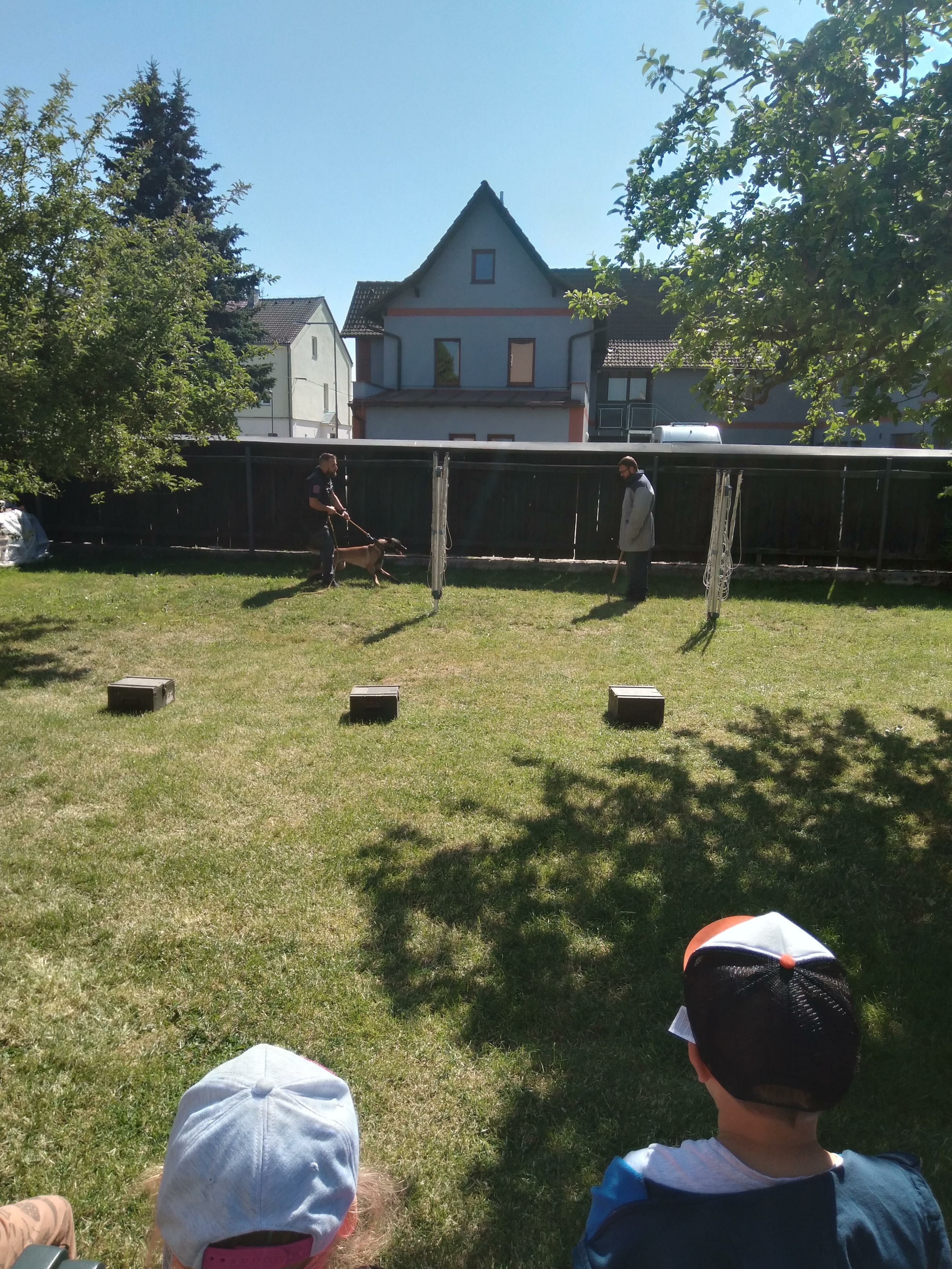 Ukázka služební kynologie na „Škole v přírodě ve Skalné“
