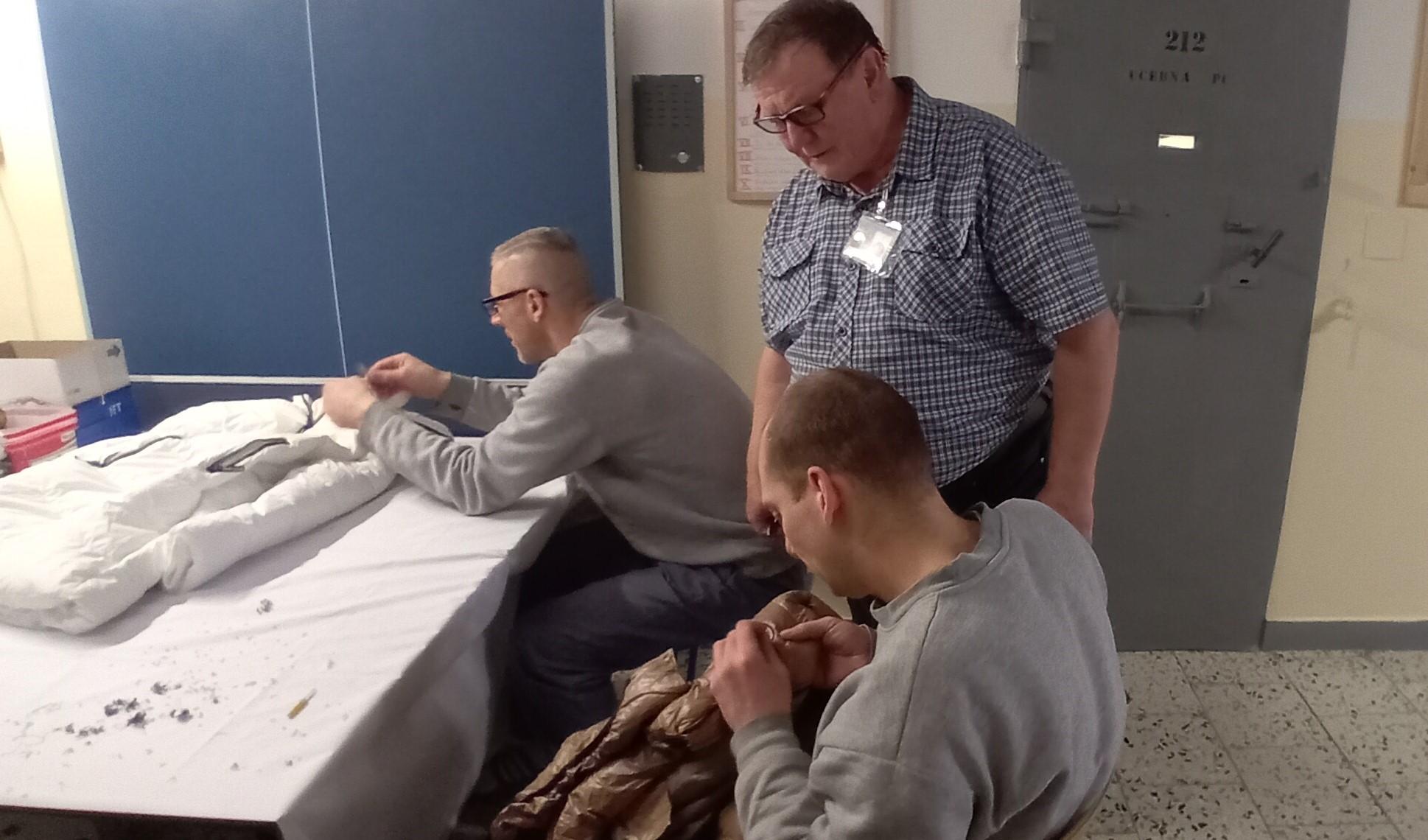 HORNÍ SLAVKOV 6. února (VS ČR) – Celkem sedm vězňů ze specializovaného oddílu pro odsouzené s poruchou duševní a poruchou chování z Věznice Horní Slavkov se v únoru aktivně zapojilo do činností spojených s úpravou dětského oblečení. Bundy, které by byly jinak zničeny, budou sloužit dětem z dětských domovů.