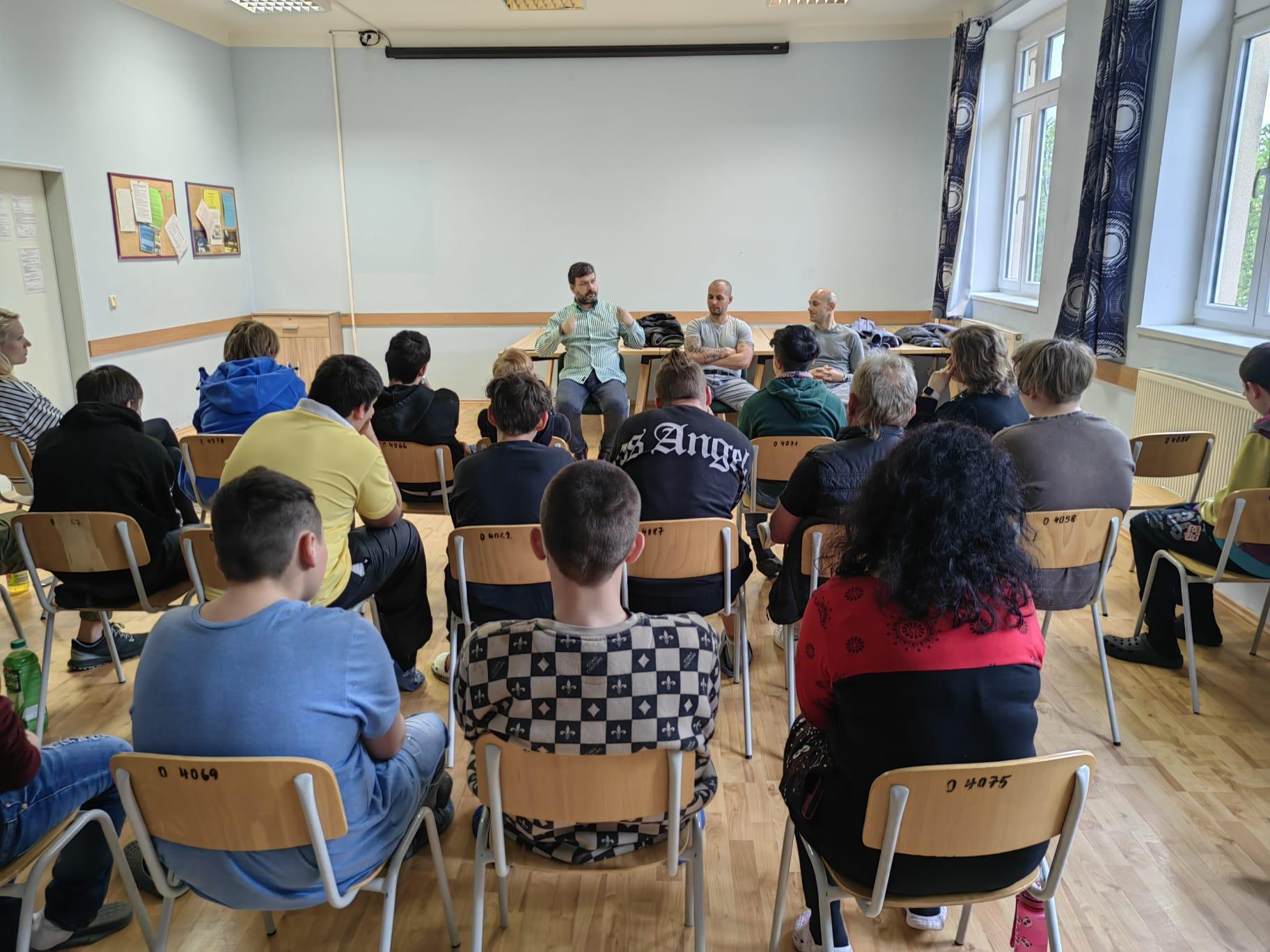 JIŘICE 10. dubna (VS ČR) - Dne 10. 04. 2024 proběhla v Dětském domově se školou Slaný přednáška na téma současné penitenciární praxe ze strany speciálního pedagoga Věznice Jiřice, spojená s besedami účastníků akce s vybranými odsouzenými z objektu tzv. Otevřené věznice.