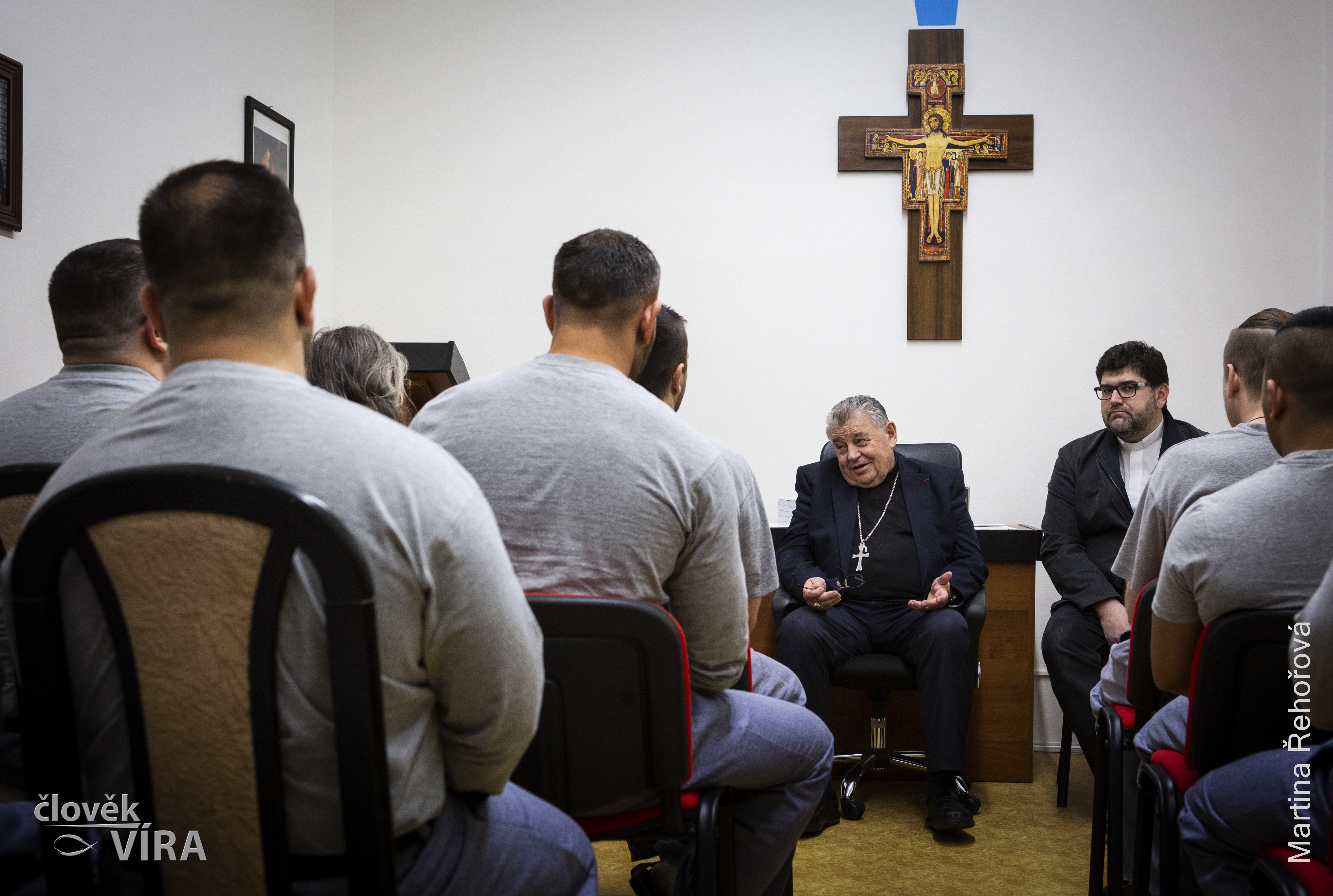 JIŘICE 9. dubna (VS ČR) - V úterý na svátek svatého Libora dne 9. dubna 2019 navštívil kardinál Dominik Duka Věznici Jiřice. V doprovodu ředitele věznice plk. Mgr. Petra Suka, prvního zástupce plk. Mgr. Jana Nováka, vězeňských kaplanů Roberta Čovana a P. Pavla Porochnavce a dalších pracovníků si prohlédl nejprve unikátní pilotní projekt Otevřené věznice. V ostrahové části věznice si pan kardinál prohlédl některé cely a absolvoval besedu s vybranými vězni z Oddílu s rozšířeným programem o pastorační a psychospirituální péči, kteří dlouhodobě využívají duchovenskou péči. Otázky odsouzených směřovaly zejména k jeho osobní zkušenosti s postní dobou a výkonem trestu v období komunismu, přátelství s Václavem Havlem a podobě víry, kterou společně s dalšími věřícími vězni sdíleli. Po závěrečné modlitbě „modlitby Páně“ a požehnání rozdal kardinál Duka odsouzeným kapesní vydání Nového zákona, která jim na jejich přání také podepsal.