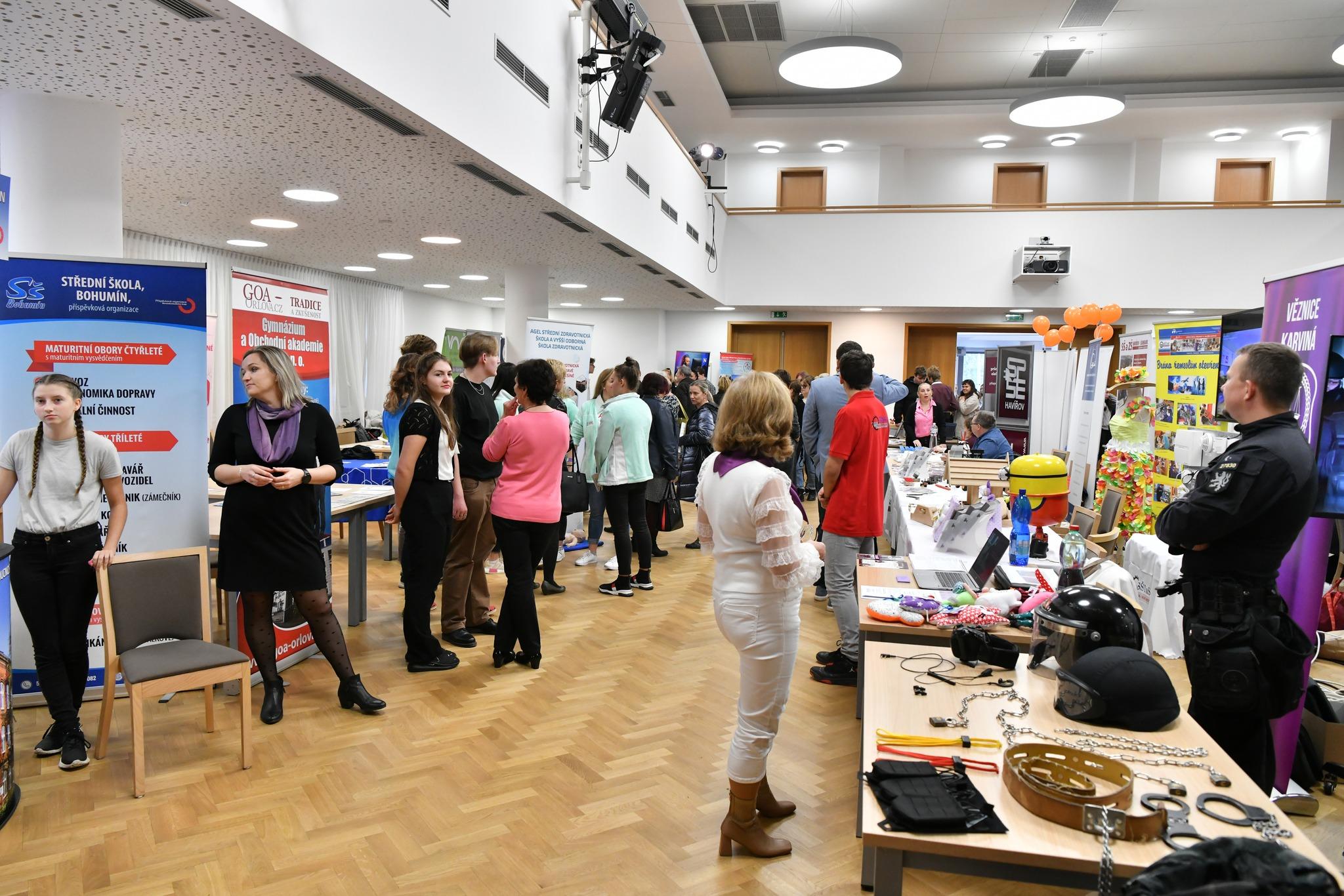 Karviná, 11. listopadu (VS ČR) Ve středu 09.11.2022 proběhla v Obecním domě Družba v Karviné výstava středních škol s názvem Volba povolání. Výstavu pořádal Úřad práce ČR, kontaktní pracoviště Karviná společně s Informačním a poradenským střediskem pro volbu povolání pod záštitou statutárního města Karviné ve spolupráci s Městským domem kultury, Okresní hospodářskou komorou, středními školami a zaměstnavateli. Akce byla primárně určena vycházejícím žákům základních škol, ale zúčastnili se jí také rodiče, široká veřejnost a výchovní poradci, kteří měli možnost na jednom místě najít aktuální vzdělávací nabídku středních škol všech typů pro školní rok 2023/24 a také informace o možnostech uplatnění na trhu práce v regionu..