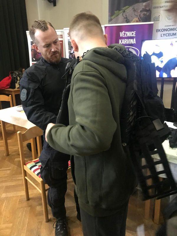 Zájemcům, převážně z řad deváťákům a jejich třídním učitelům byla personalistkami a příslušníkem Věznice Karviná prezentována vězeňská služba.