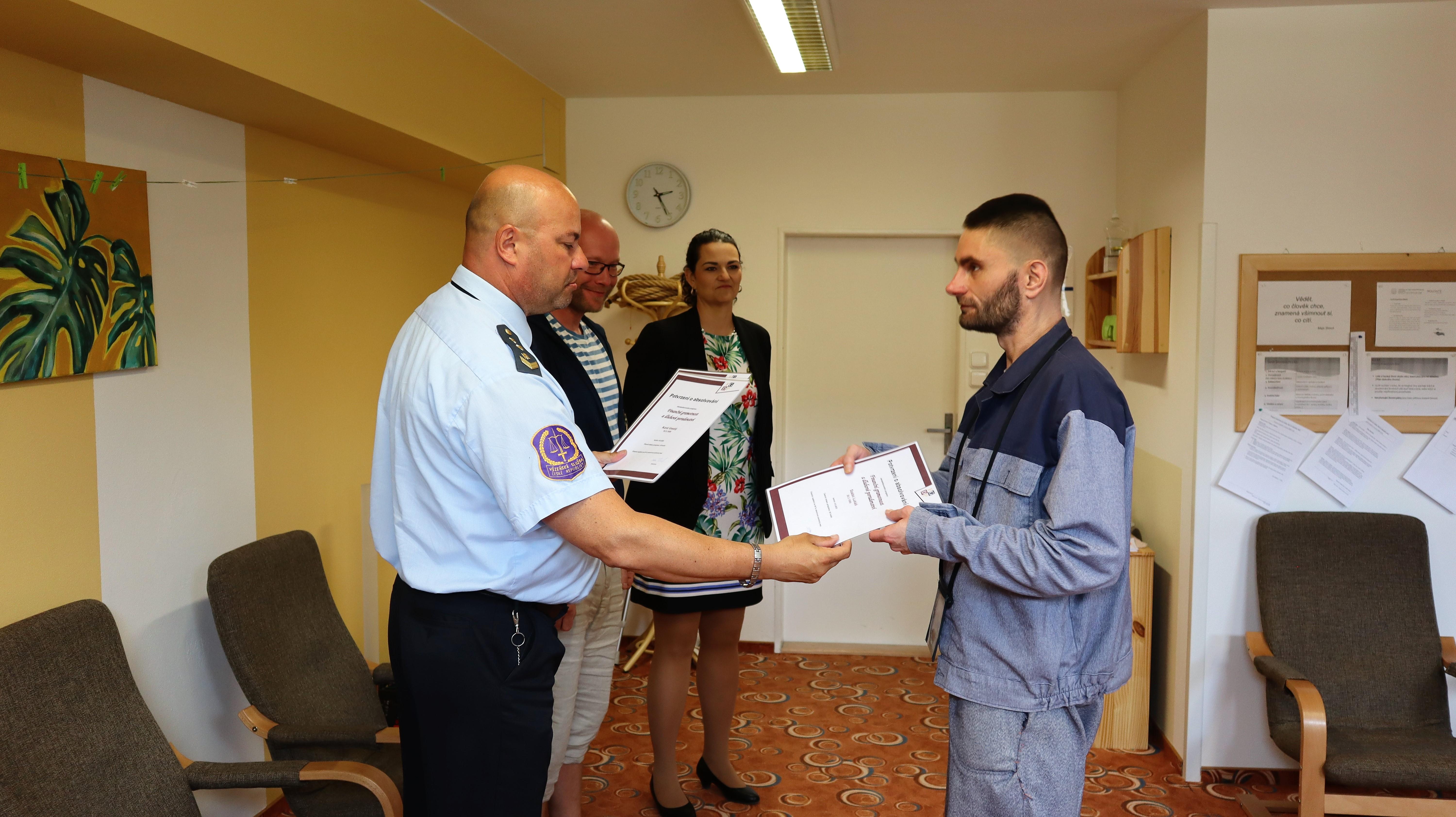 KUŘIUM 15. června (VS ČR) – Certifikáty o absolvování standardizovaného programu – finanční gramotnost a dluhové poradenství byly předány osmi odsouzeným ve věznici. Vybraní odsouzení se účastnili 19 lekcí programu v časové dotaci 29 hodin. Získané vědomosti o finančním hospodaření, případně řešení insolvence, mohou za pomoci odborných pracovníků řešit již ve výkonu trestu.