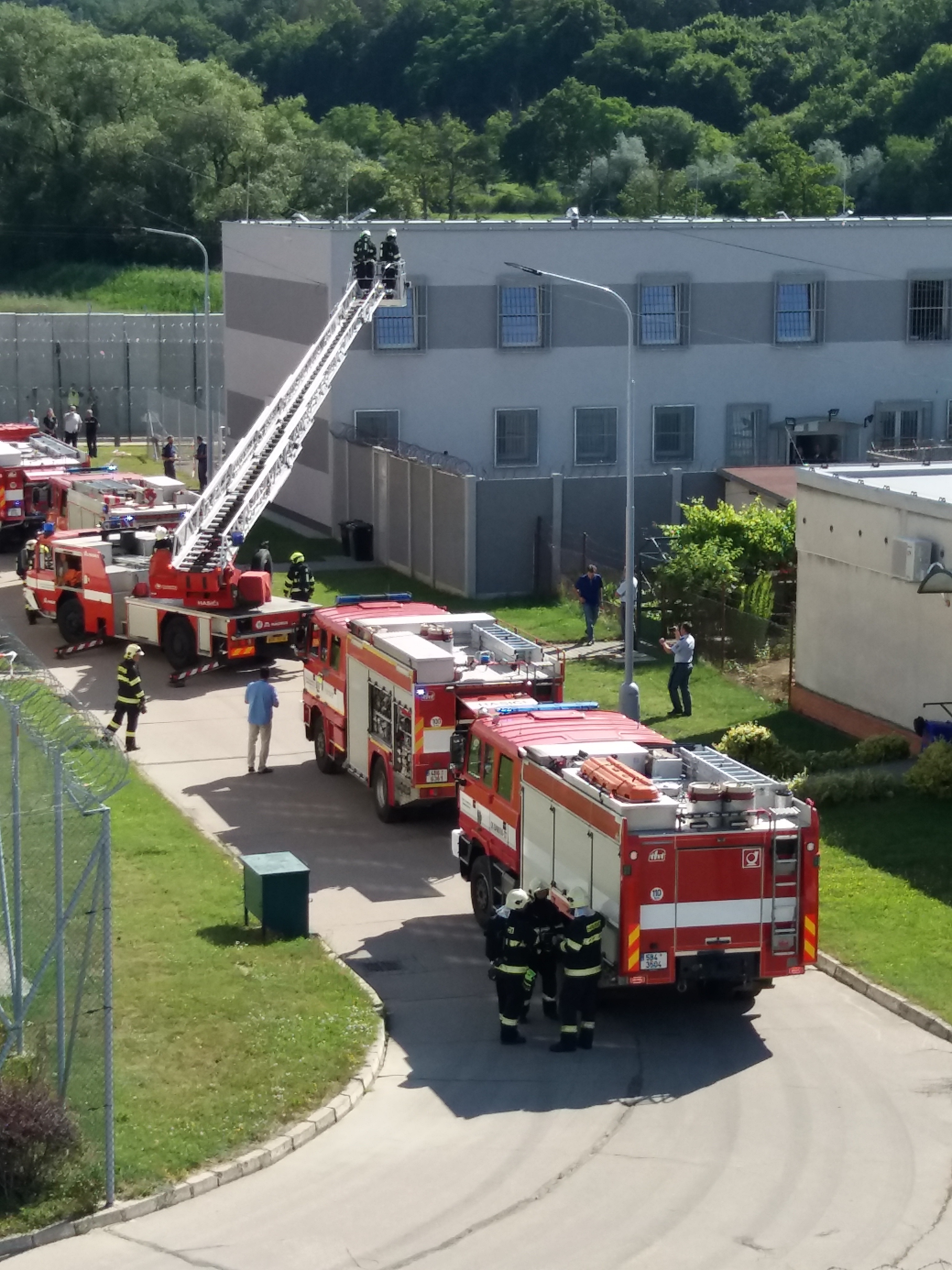 Kuřim 11. července (VS ČR) Vyzkoušet si, jak by proběhl zásah hasičských jednotek ve Věznici Kuřim, bylo cílem dnešního cvičení. Ve spolupráci s dozorčí službou a vězeňskou stráží bylo simulováno zahoření budovy v ubytovacím prostoru odsouzených. Hasičské jednotky z Tišnova, Blanska a blízkého okolí pak provedly zásah v určených prostorech budovy. Vyzkoušeli i hasičský žebřík k případnému hašení střechy objektu.