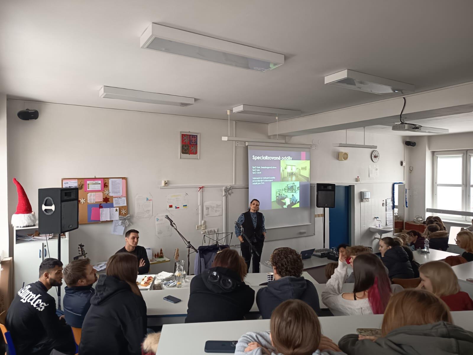 Prevence kriminality však není pouze hudební vystoupení, hlavní část besedy tvoří prezentace speciální pedagožky, která seznamuje studenty s věznicí jako místem, kde jsou odsouzení muži omezeni na své svobodě, fungují zde přesně stanovená pravidla a denní režim. Nicméně i věznice funguje jako firma, o kterou pečuje přes 250 zaměstnanců jak občanů, tak příslušníků.