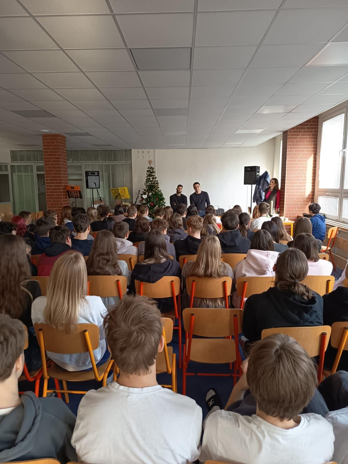 KUŘIM 12. ledna (VS ČR) - Příjemný start po vánočních prázdninách zprostředkovala vězeňská kapela Wsedě žákům devátých tříd v Základní škole Tyršova v Kuřimi. Kapela vystupuje v rámci programu Prevence kriminality, náplní této besedy je vystoupení kapely, sdělení životních osudů odsouzených a prezentace speciální pedagožky Mgr. Petry Přidalové, která zaujala 60 žáků, někteří vůbec poprvé zjistili, že se v Kuřimi nachází věznice.