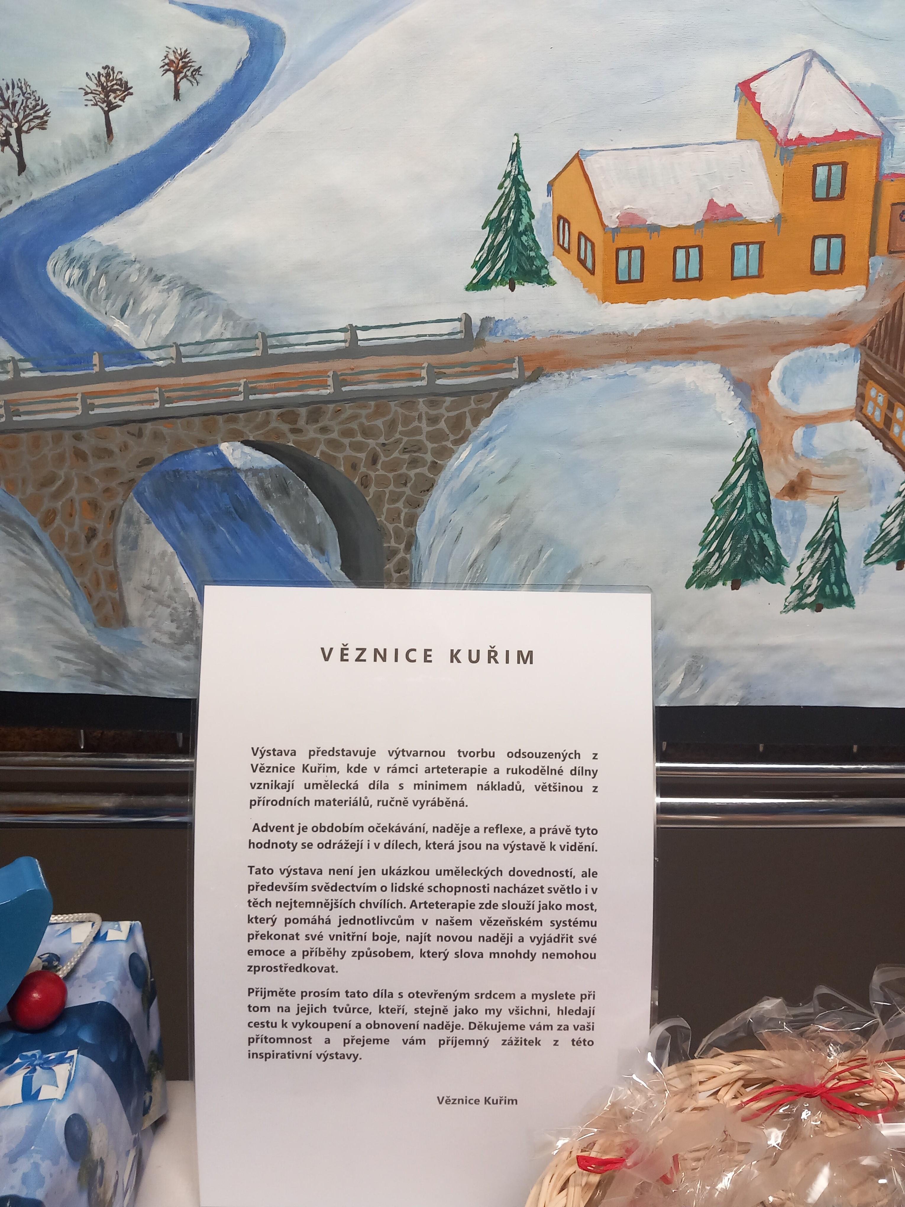Advent je obdobím očekávání, naděje a reflexe, a právě tyto hodnoty se odráží i v dílech, která byla na výstavě k vidění. Výstava představila výtvarnou tvorbu, která vzniká v rámci arteterapie, jsou to umělecká díla s minimem prostředků, většinou z přírodních materiálů a ručně vyráběná. Výstava nebyla jen ukázkou uměleckých dovedností, ale především svědectvím o lidské schopnosti nacházet světlo i v těch nejtemnějších chvílích. Arteterapie, zde slouží jako most, který pomáhá jednotlivcům ve vězeňském systému překonat své vnitřní boje, najít novou naději a vyjádřit své emoce a příběhy způsobem, který slova mnohdy nemohou zprostředkovat.