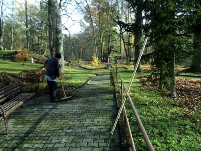 Tento týden se vybraní odsouzení z bezdrogové zóny v rámci extramurálních aktivit vydali opět na brigádu do Domova pro seniory v Dolních Pochlovicích, aby pomohli s úklidem parku a jeho zazimováním. Tři dny pod dohledem svého vychovatele shrabovali v rozlehlé zahradě velké množství spadaného listí a nakládali ho do sběrných kontejnerů.