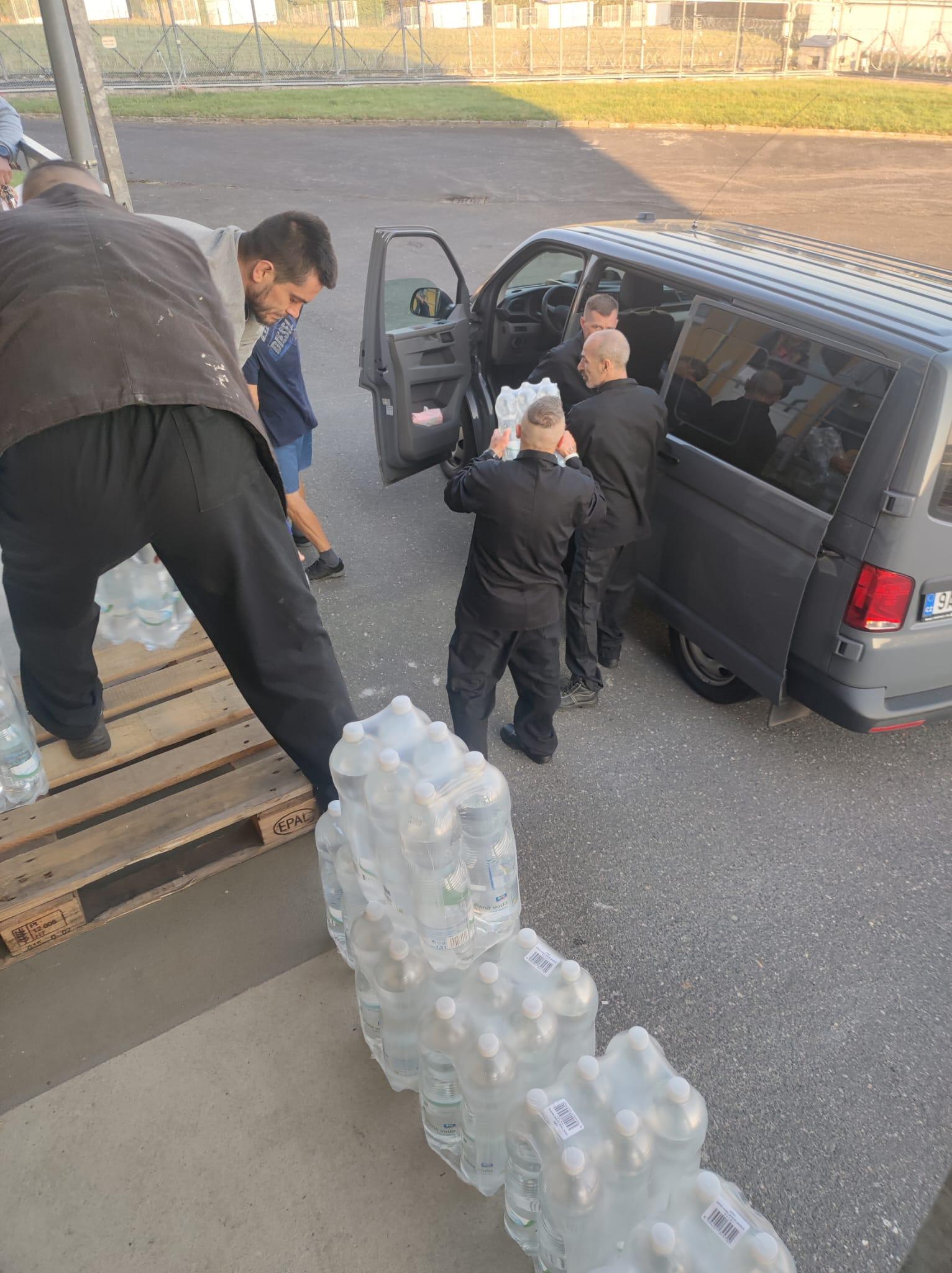 KYNŠPERK NAD OHŘÍ 20. září (VS ČR) - Věznice Kynšperk nad Ohří se zapojila do dobročinné sbírky a na pomoc obětem povodní vypravila dva transportéry s humanitární pomocí. Sběrným místem byla potravinová banka v Praze v Uhříněvsi, kam věznice přivezla včera odpoledne dva transportéry naplněné balenou pitnou vodou, hygienickými potřebami a úklidovými prostředky.