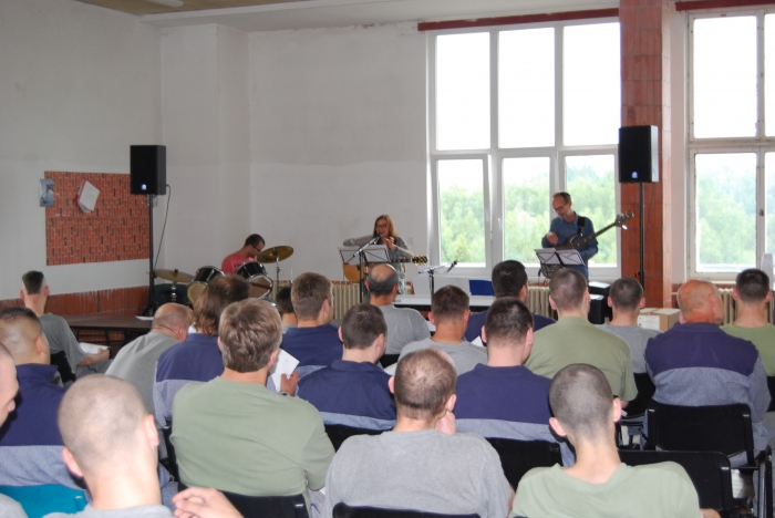 Po dvou letech zavítala do věznice v neděli dopoledne německá zpěvačka Petra Halfmann se svým doprovodem, aby zde koncertovala pro téměř osmdesát odsouzených. Nabídka koncertu přišla z partnerské věznice v Hofu v Bavorsku, kde Petra před víkendem také vystupovala. Petra zpívá ve věznicích poměrně často. Jinak zpívá se sborem, s kapelou nebo sólově, v koncertních sálech, při bohoslužbách nebo pod širým nebem. Repertoár byl i tentokrát pestrý, slyšet byly skladby v rodném jazyce, několik jich zaznělo v angličtině a velký ohlas měla píseň v češtině. Při hře ji doprovázel Robert Reuter a Gunars Birgerson. Se zpěvačkou přijel také jednačtyřicetiletý Peter Wagner, který překládal mluvené slovo a sdílel s odsouzenými své svědectví. Jako malý chlapec přišel o dosavadní domov a rodinu. Po čase ho přemohl démon drog, alkoholu a cigaret. Nebyl schopen žádného vztahu a přesto, že po čase potkal dívku, do které se zamiloval a počal s ní dítě, nebyl schopen využít této šance na nový život. Nakonec skončil na ulici, kde sbíral i nedopalky cigaret. I když ho vzal na milost prastrýc, který mu poskytl střechu nad hlavou, neviděl východisko a pokusil se o sebevraždu. Za čas se setkal s Janem z Iránu, který ho přivedl k Ježíši Kristu. Díky němu přestal s drogami a alkoholem. „Mám pravidelný kontakt se svým synem a můj Král mi daroval i rodinu s věřící ženou a malou dcerkou“, pověděl. Život je neustálý boj, ale Petr ví, že jeho Král ho nikdy neopustí a co udělal pro něj, udělá i pro každého, kdo ho k sobě pustí. Pro věřící je naděje pro každého a ten kdo zachraňuje a dává nový život je Pán Ježíš Kristus. Na závěr setkání bylo darováno okolo padesáti Nových zákonů, které právě o naději vypráví. Odsouzeným je věnoval Mezinárodní svaz Gedeonů. Významný podíl na organizaci akce má Josef Hofbauer (více zde) a finančně jej podpořili němečtí Obchodníci plného evangelia. Ve věznici je nyní přes tisíc odsouzených, koncertu se účastnili vybraní vězni z oddílu pro odsouzené věřící a se zájmem o duchovní hodnoty, z bezdrogové zóny a standardních oddílů (více zde). peb