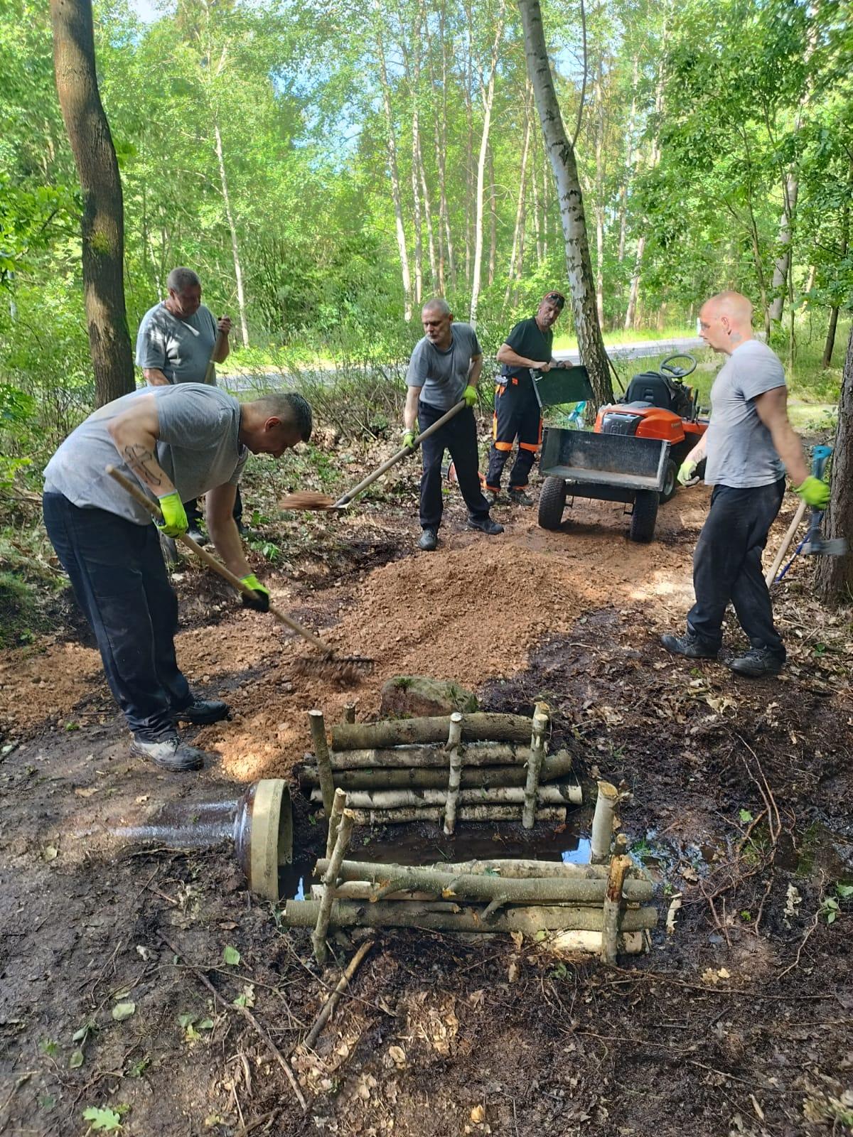 KYNŠPERK NAD OHŘÍ 10. června (VS ČR) - Odsouzení z výstupního oddělení se v rámci extramurálních aktivit podíleli na zpřístupnění poslední etapy lesní stezky vedoucí mezi obcemi Kaceřov a Horní Pochlovice.