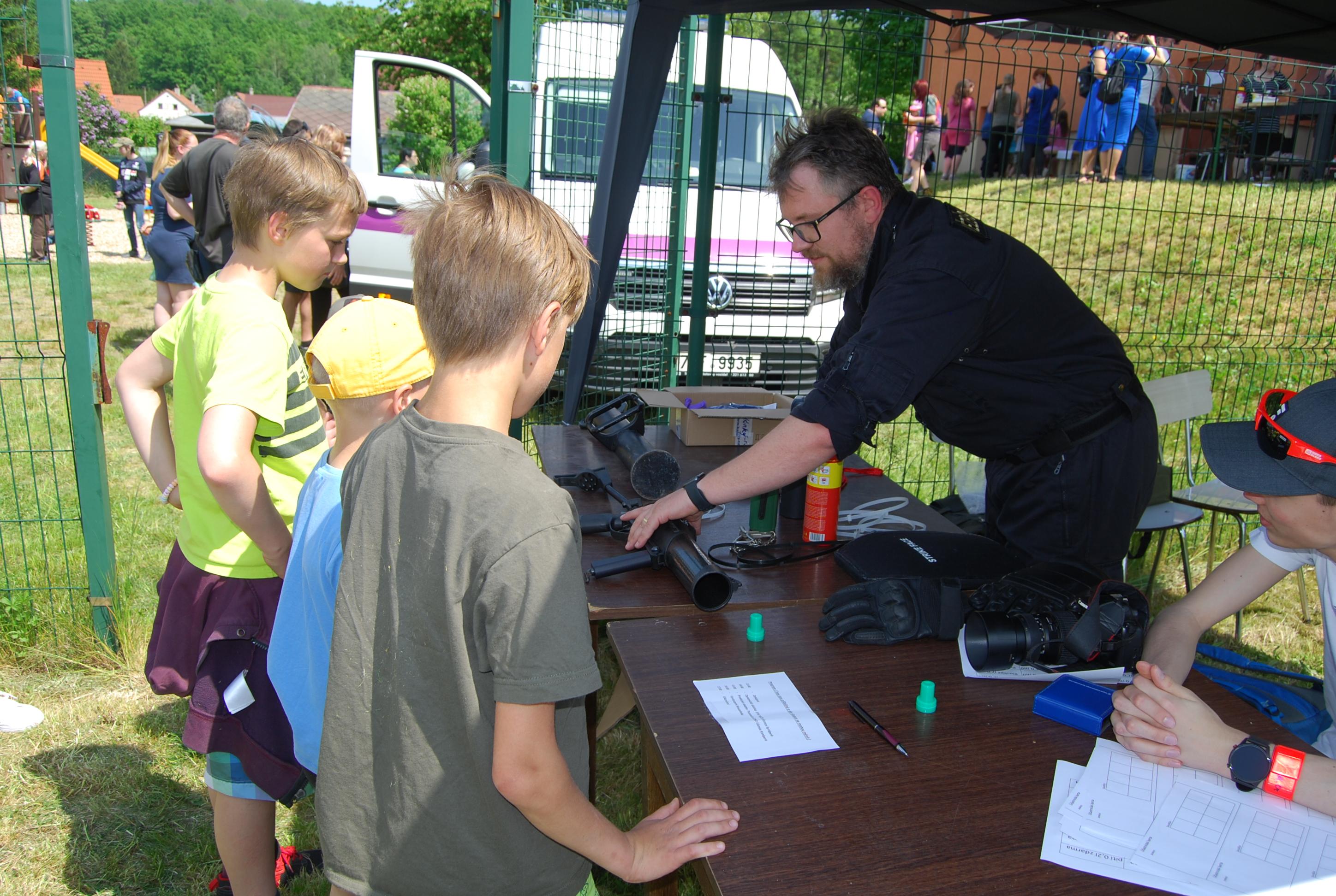 Zájemci si pak mohli jednotlivé části výstroje a výzbroje zblízka prohlédnout, potěžkat a třeba i vyzkoušet. K dispozici měli expanzní zbraň Kraken, beranidlo, pouta, poutací opasek a poutací popruhy. Vše si zvědavě prohlédly nejen děti, ale i dospělí. Příslušníci jim vše ochotně předvedli a vysvětlili.