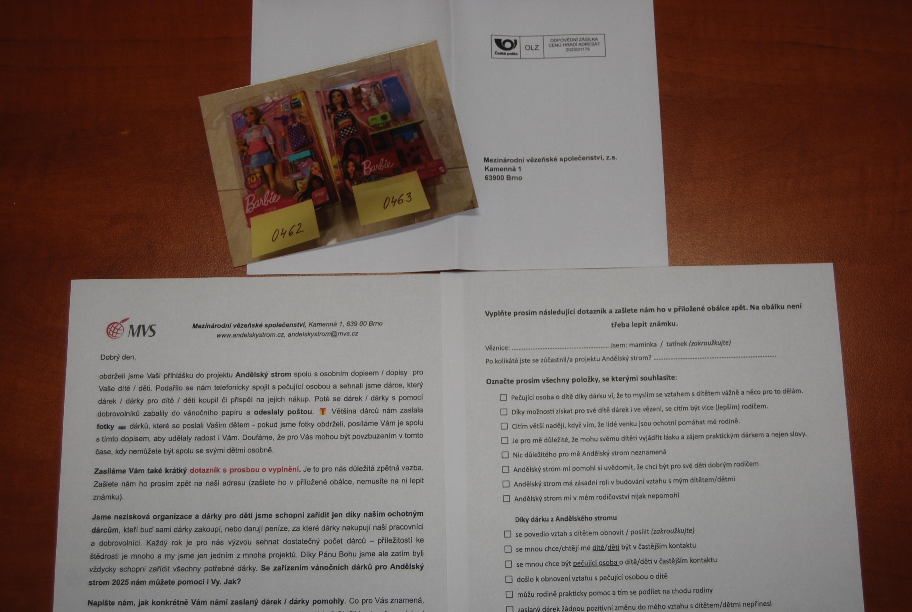 Organizace posílá vězněným rodičům dopisem zpětnou vazbu, zda se jim podařilo spojit s jejich rodinami a poslat vyžádaný dárek jejich dětem. Do dopisu přikládá také fotku dárku, který jejich dítě pod stromeček dostalo.