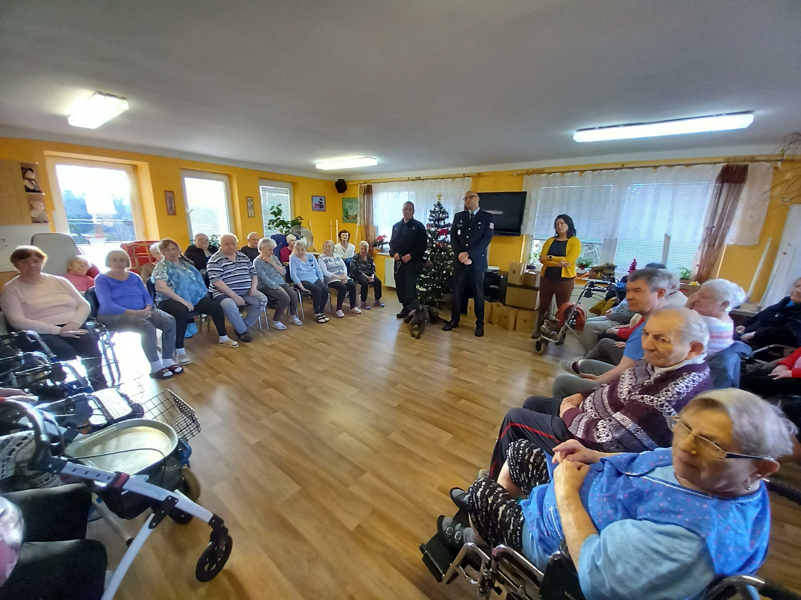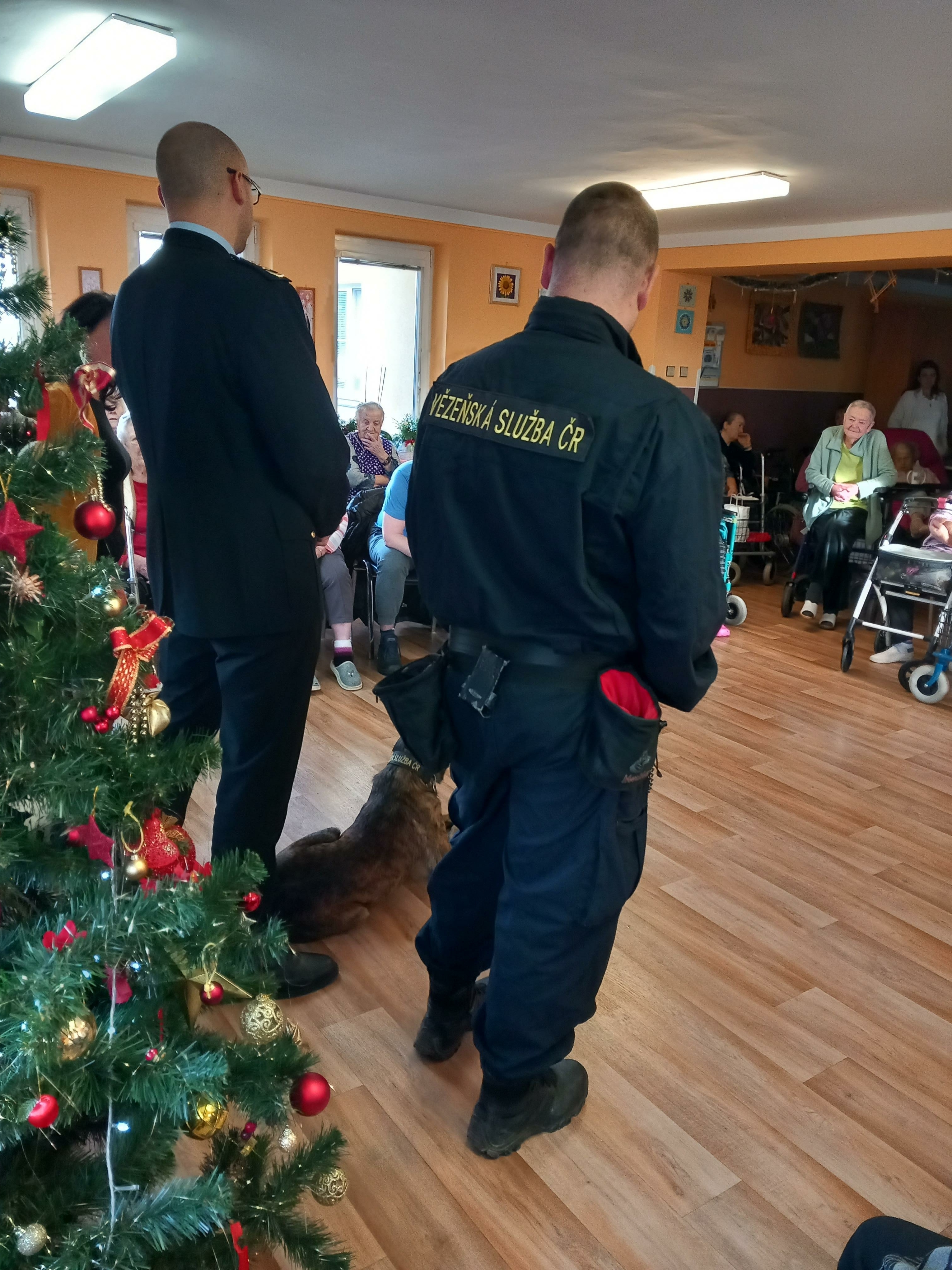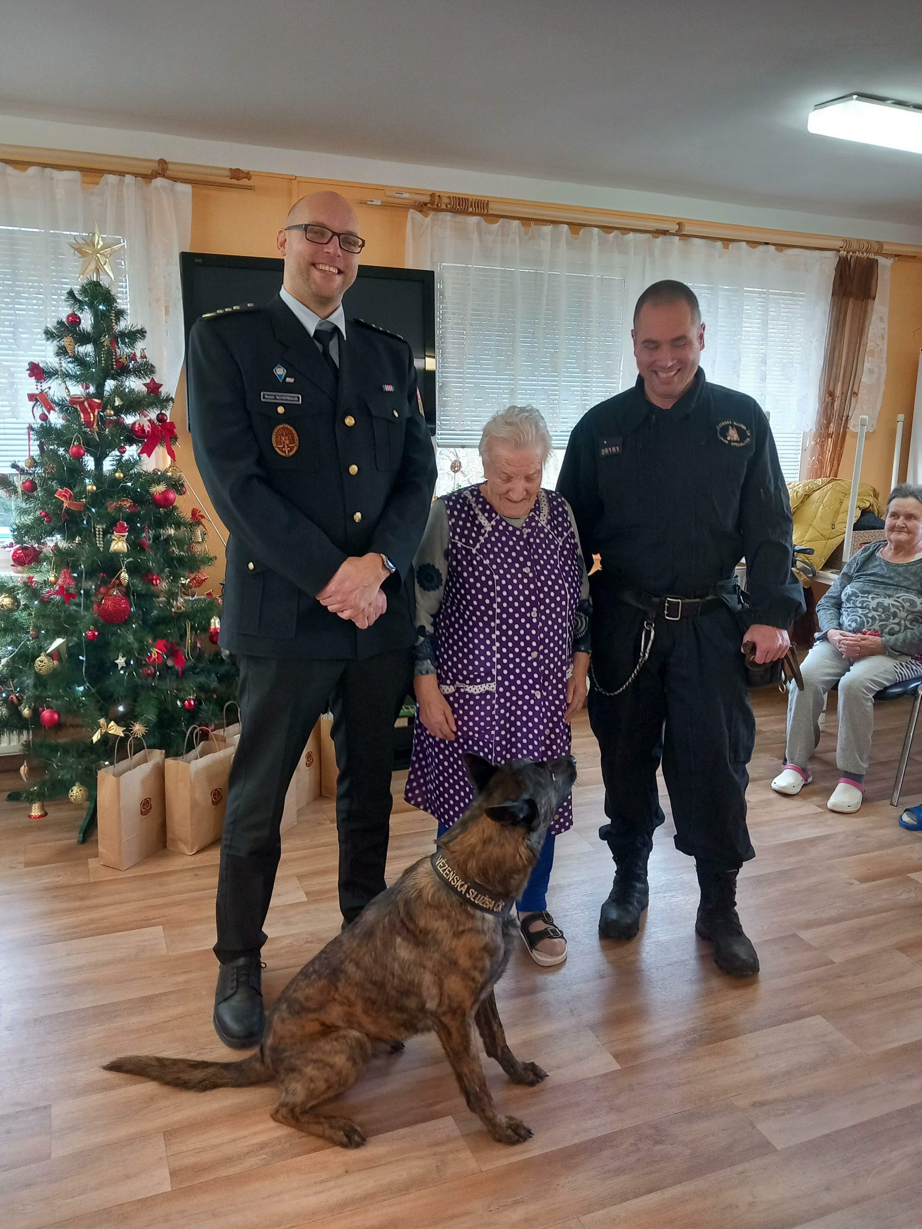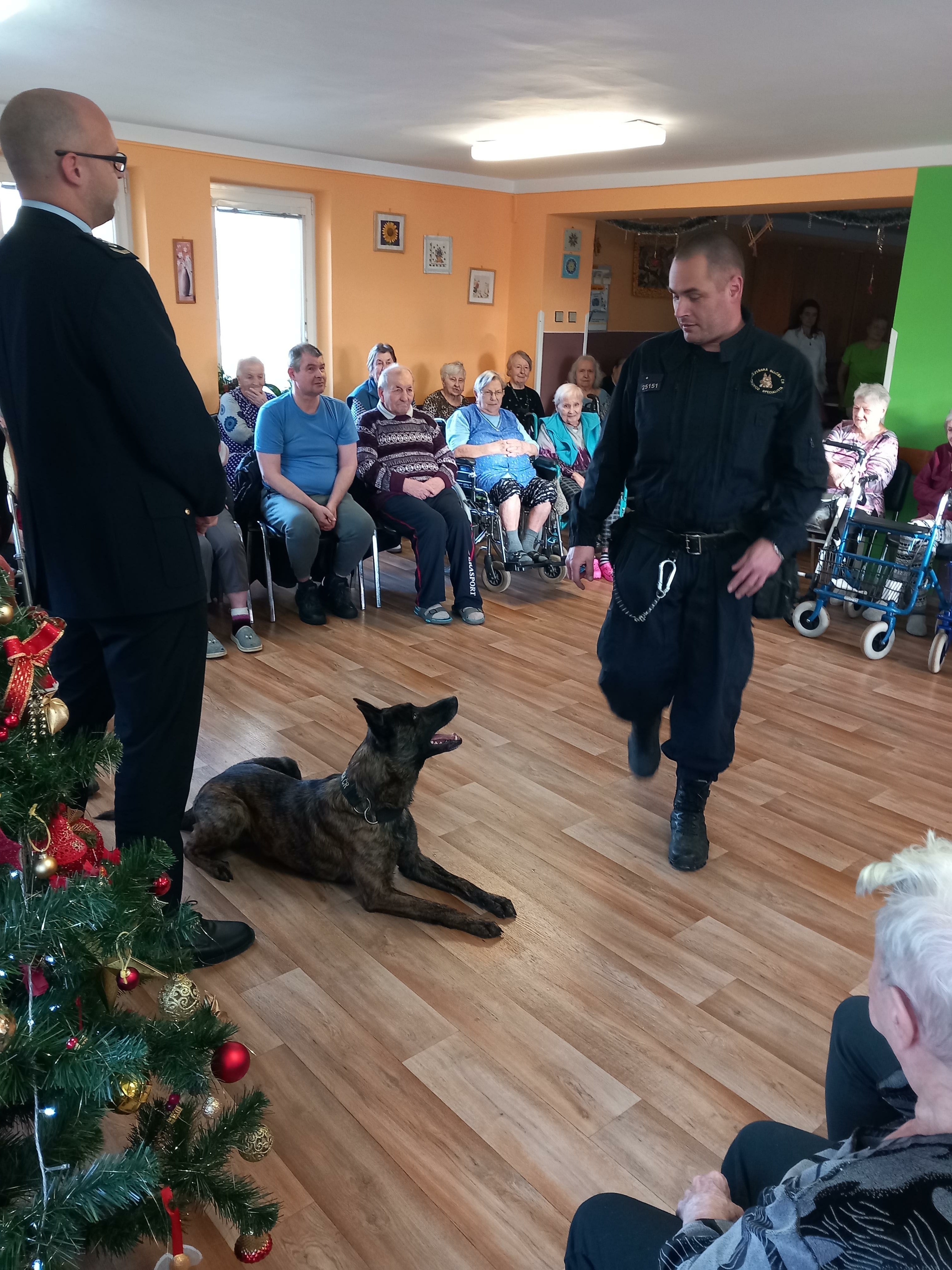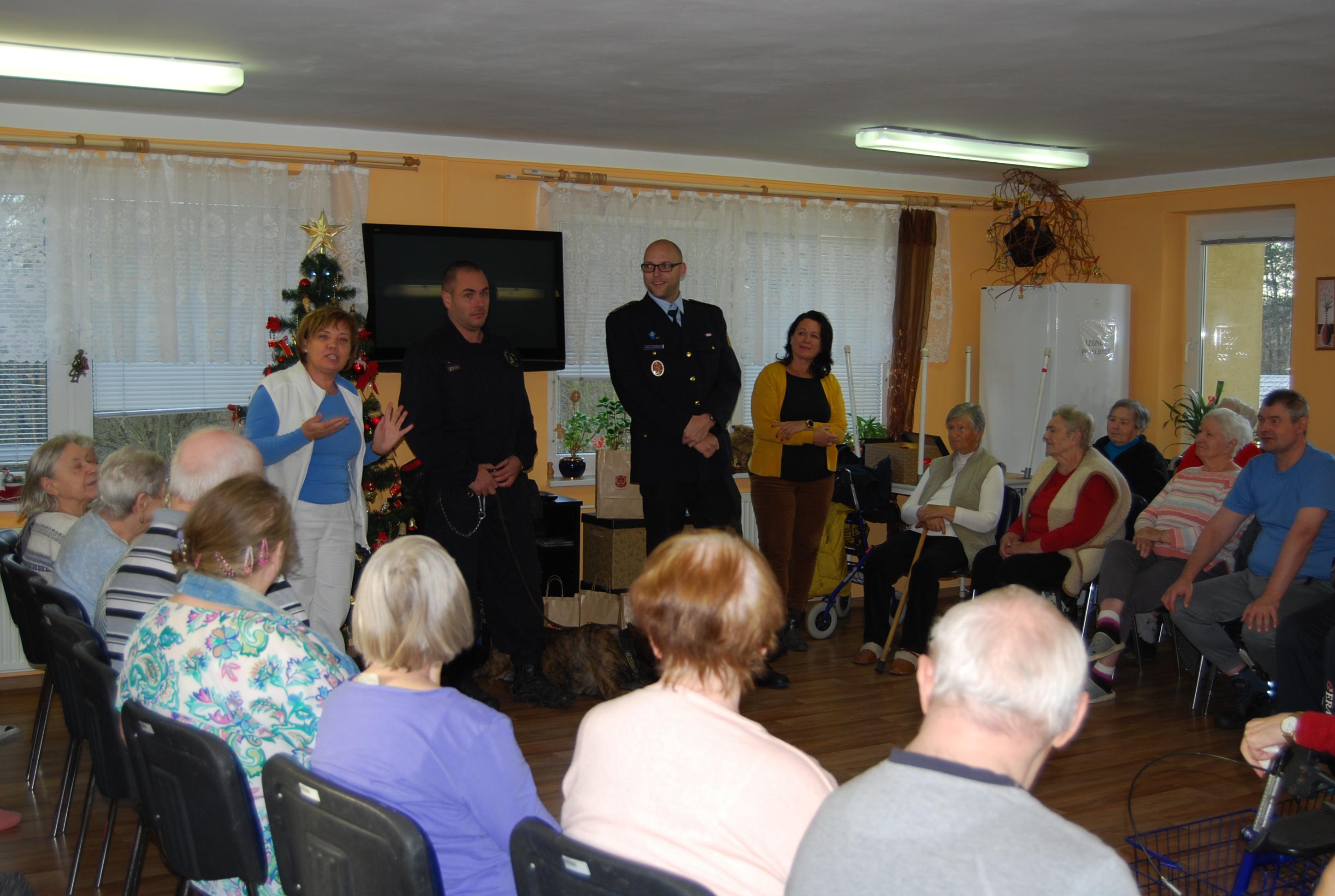Velkou radost udělalo seniorům setkání se služebním psem Čertem, který jim předvedl některé své dovednosti. Čert byl velmi přátelský a kontaktní a rád se nechal od mnohých pohladit a zapózoval i při společném focení.
