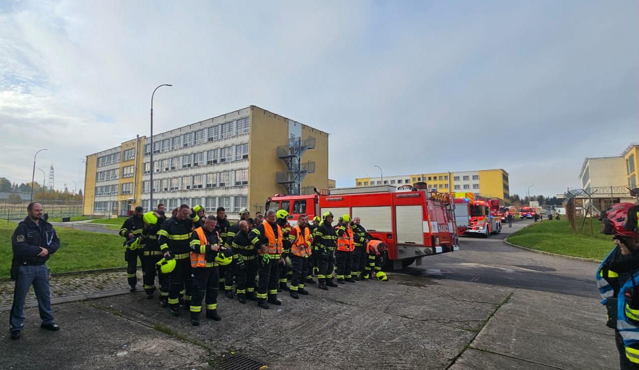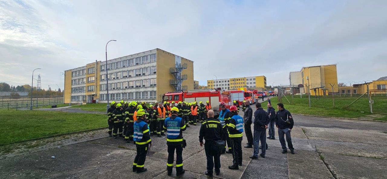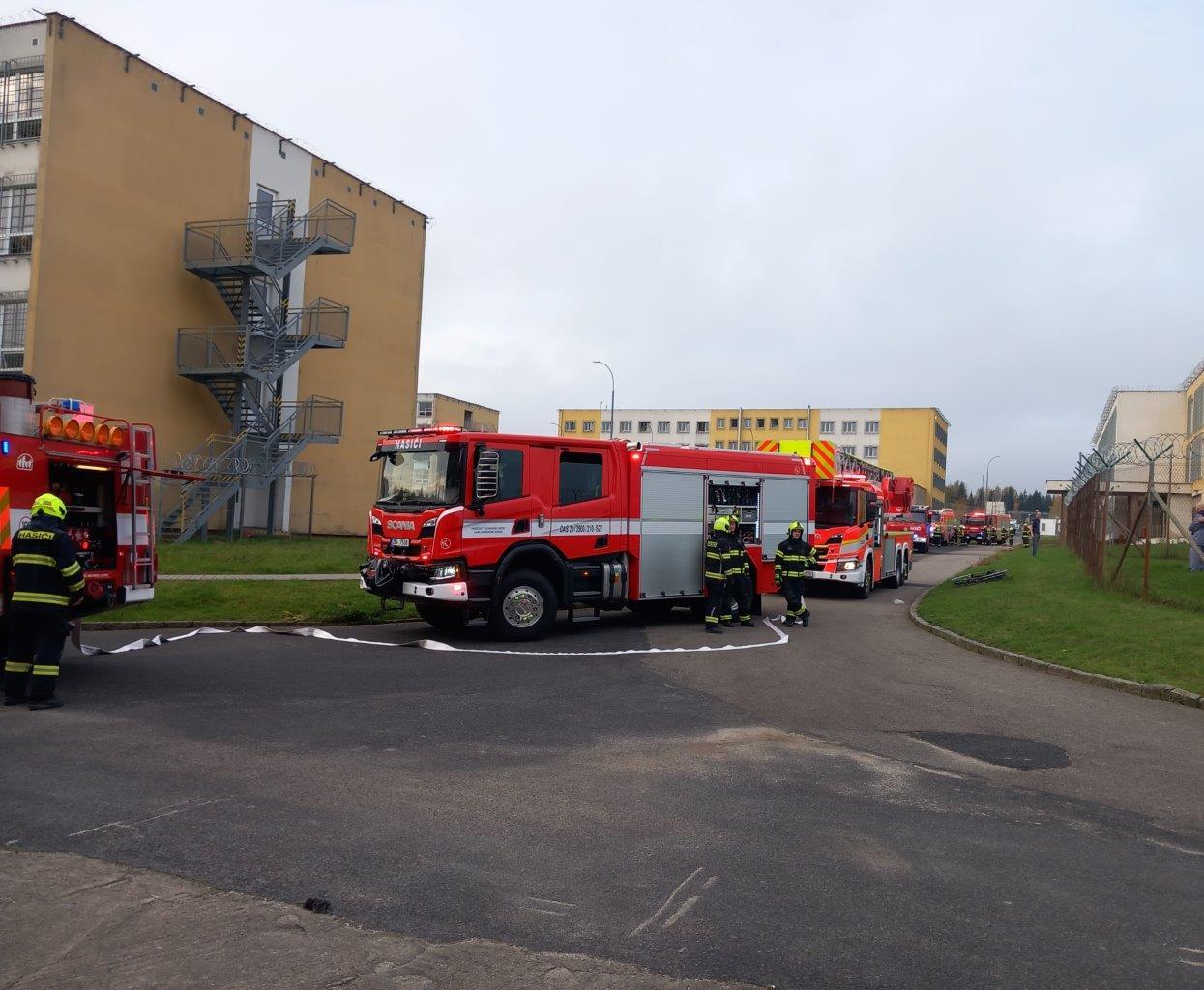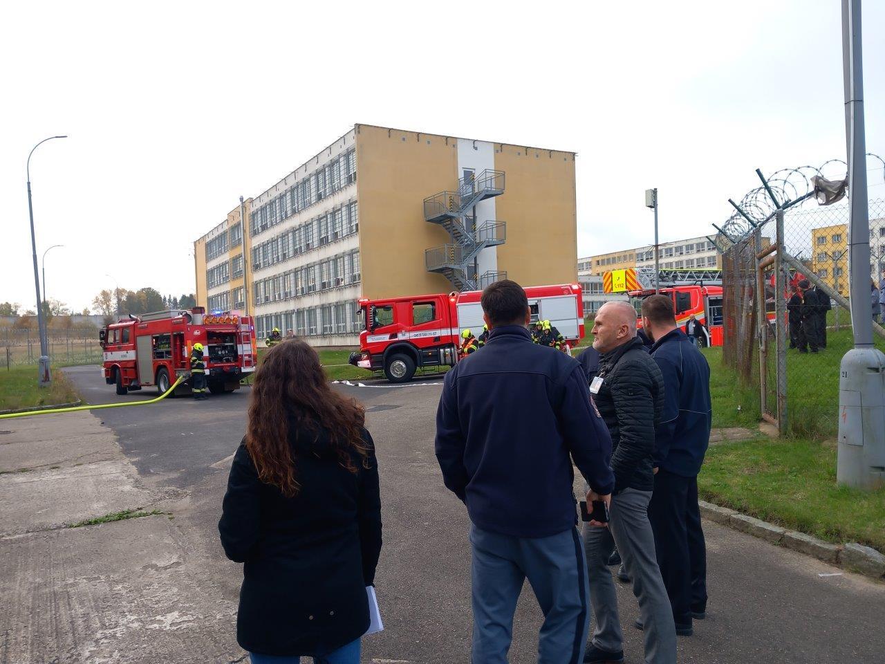 KYNŠPERK NAD OHŘÍ 22. října (VS ČR) - Dopoledne 21. října se do věznice sjela vozidla HZS Karlovarského kraje spolu s některými dobrovolnými hasičskými jednotkami, aby v rámci praktického výcviku prověřily součinnost s věznicí při likvidaci požáru uvnitř věznice. Požár nastal ve sklepních prostorách ubytovny odsouzených ve skladu s výstrojními součástkami.