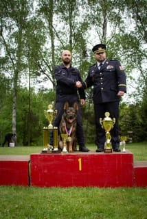 „Naše kynologie má 11 služebních psů a je nás 8 psovodů. Bylo mi ctí se tohoto závodu účastnit a bez mých kolegů bych na stupních vítězů určitě nestál. Jsou mi oporou jako přátelé tak i jako pomocníci při výcviku“, dodává J. Bažo.